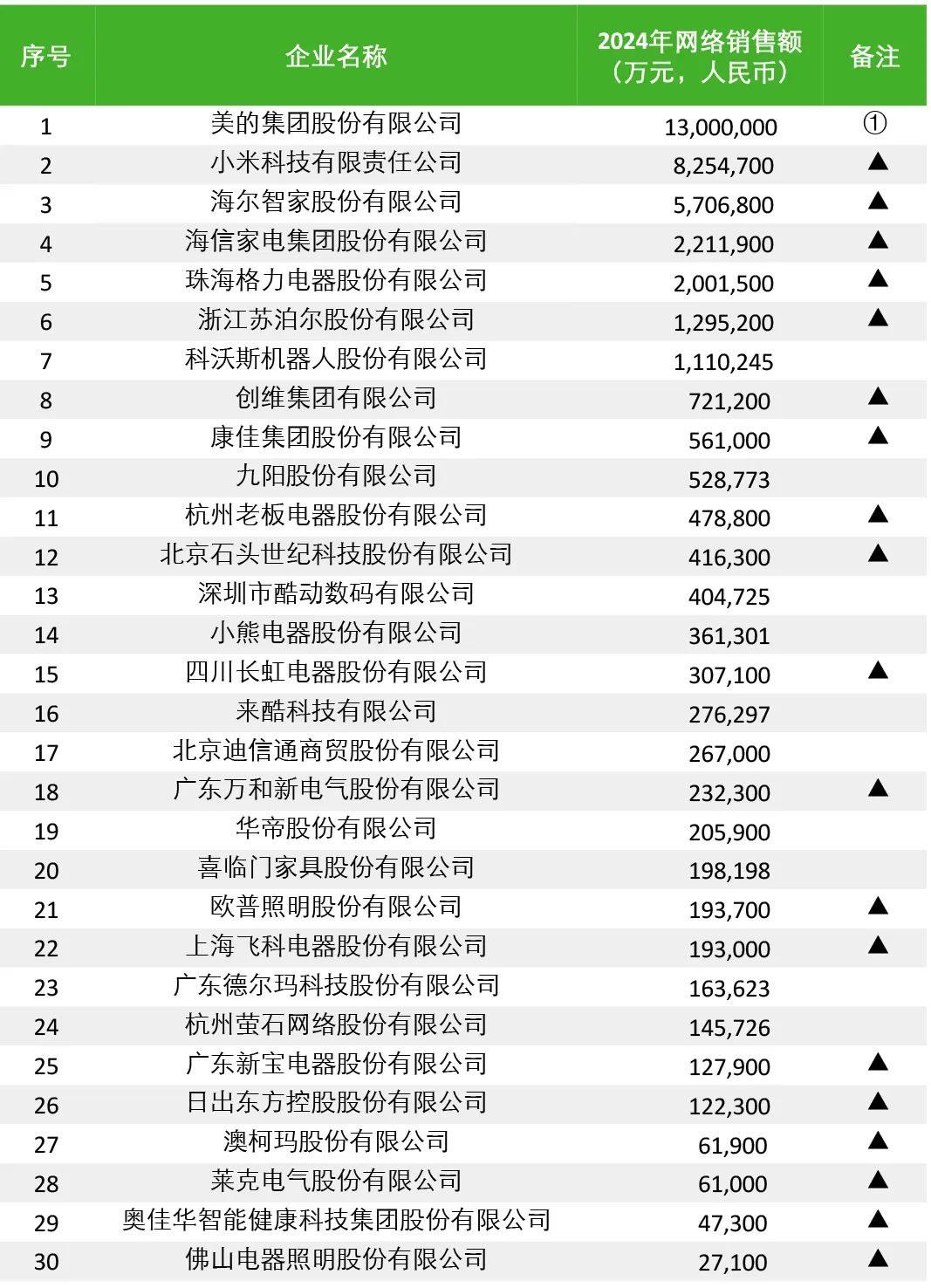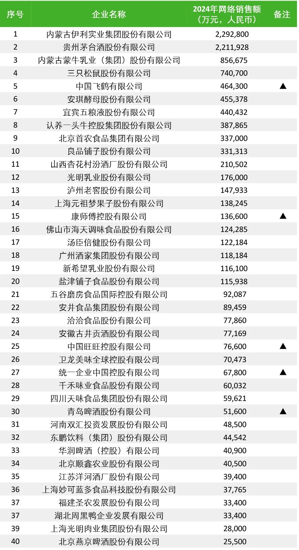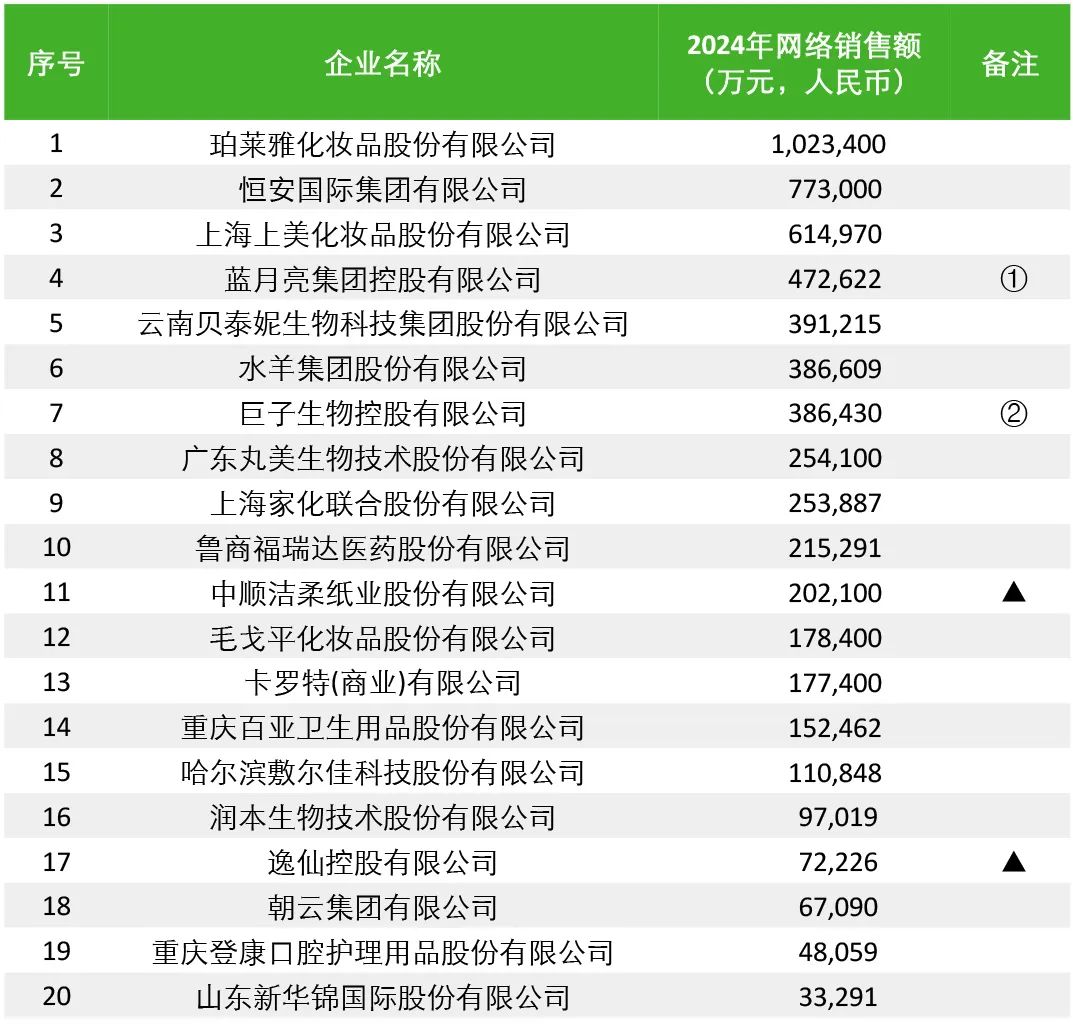 3.备注标“▲”,表示数据来自wind数据库。年度数据由2024年1-12月线上销售额月度数据汇总所得,wind线上销售额数据直接来自与各家上市公司在天猫、京东等线上电商平台开设的旗舰店、直营店的每日销售情况。