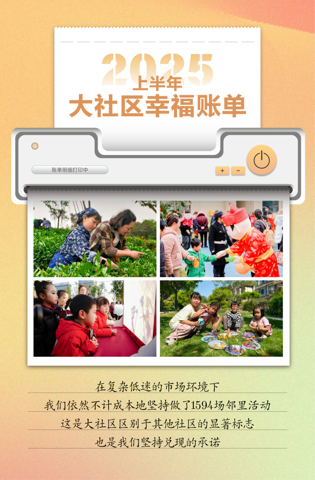 上半年,我们在方方面面回应孩子们的需求。面对让家长们头痛的暑假,我们倾情打造了“大社区夏令营”,策划了“小小金粉体验官”、“星空奇妙夜”、“夏乐大作战”一系列活动,带着孩子们玩耍交朋友,出门涨见识,寓教于乐,帮助他们丝滑过渡到新学期。