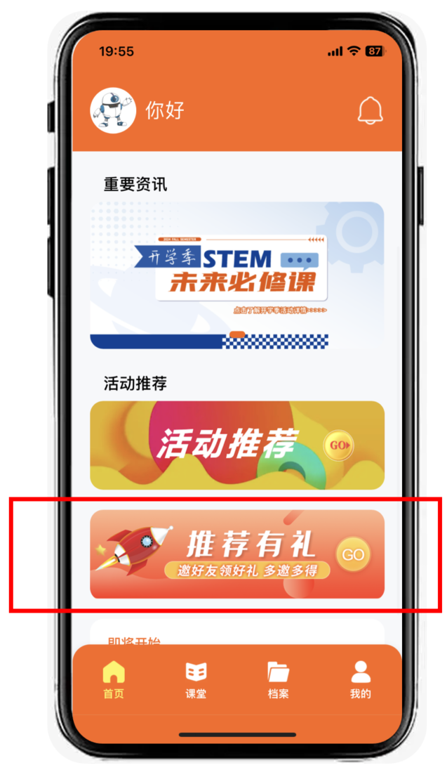 App首页新增【即将开始课程】提醒功能