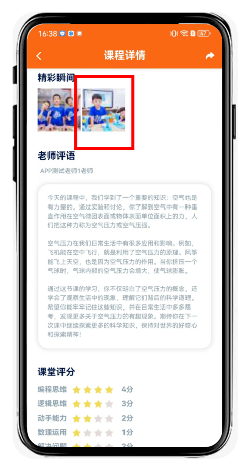 即可查看【精彩瞬间】【课堂评分】等