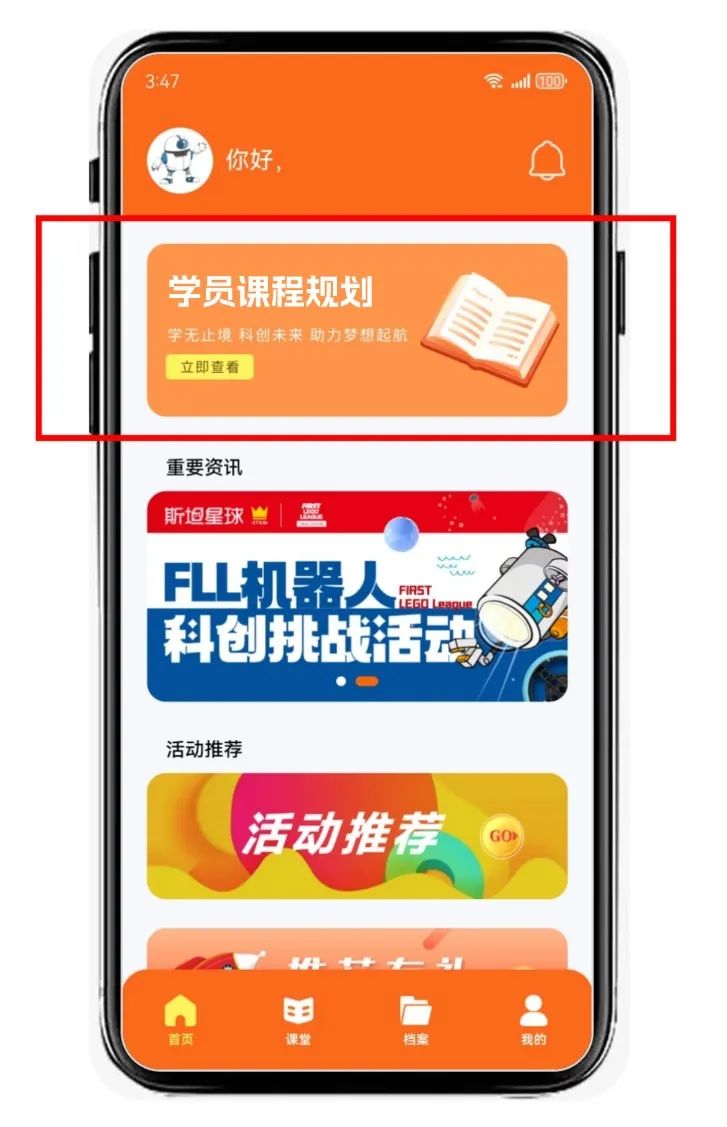 进入【首页】,点击【学员课程规划】