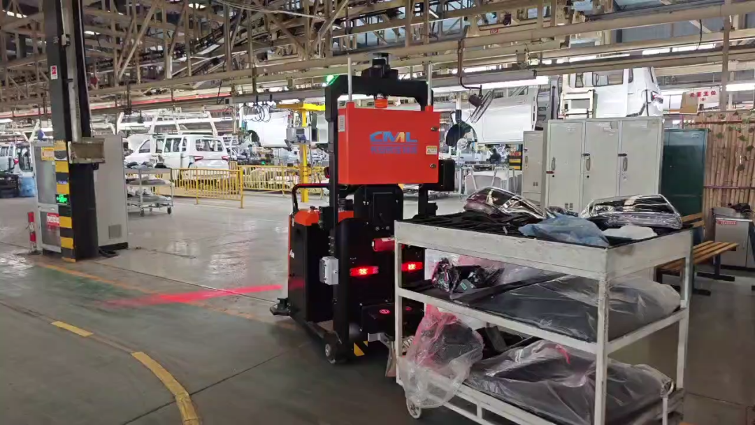 铁木牛机器人为约25000平方米大小的长安民生物流总装车间与RDC仓库设计对应作业点单向循环的作业路线,采用室内无人牵引车与人工交互作业,整体模式为空满置换,甩挂的作业模式,已打造完成河北长安汽车总装工艺第一个无人配送标杆项目,整体降低人工作业强度,实现了智能化转型升级。