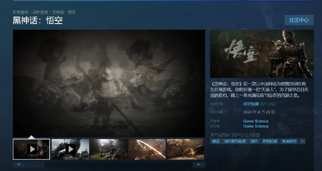 (《黑神话:悟空》在steam好评如潮,简体中文区好评率达到96%)