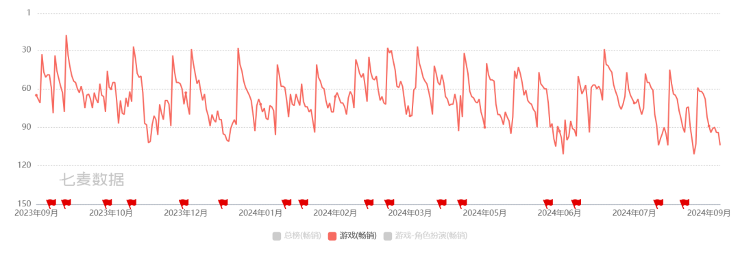 (《一念逍遥》近一年以来iOS畅销榜单情况)