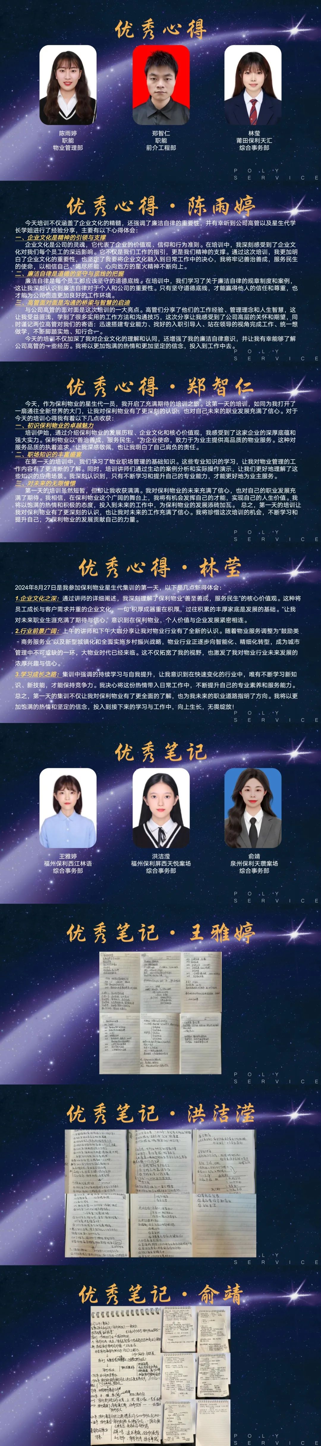 经过5天的学习,星生代不仅收获了知识和友谊,更收获了荣誉和奖项。在最后一天的颁奖环节中,保利物业福建公司荣获“最优星”优秀单位、星生代徐晓曦、郭心怡荣获“超级星”优秀学员。