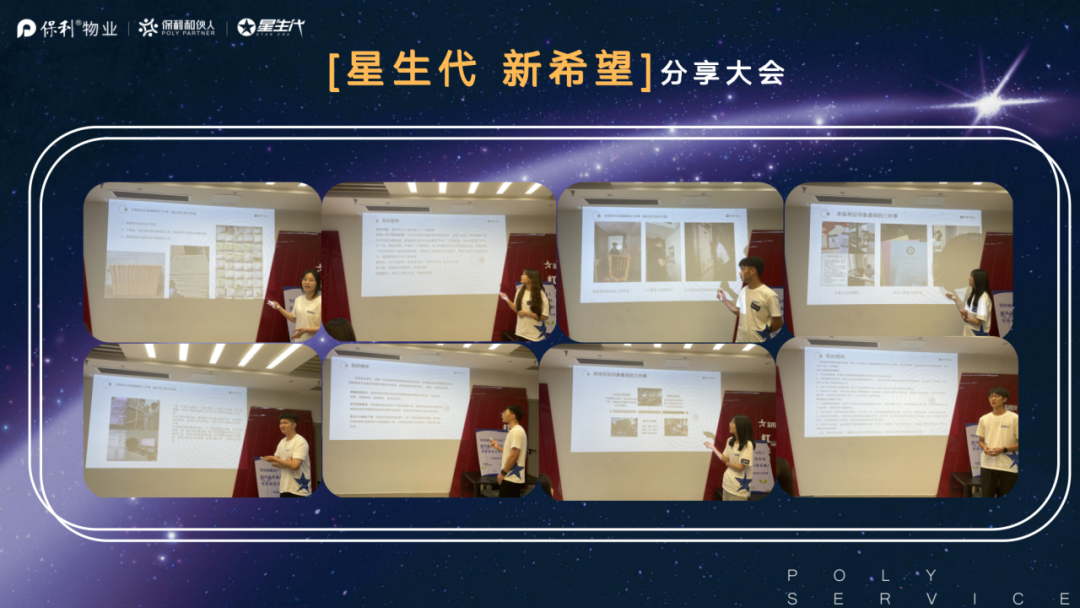 作为初入职场的星生代,成为保利人后都有很多的感悟。在这个分享环节,星生代们跟大家分享了自己来到保利后印象最深的三件事、自己的榜样和对未来的畅想。在轻松愉快的分享中,星生代们看到了更多优秀的保利人,感受到了保利团结向上的氛围,从而也更加坚定了自己的职业目标。