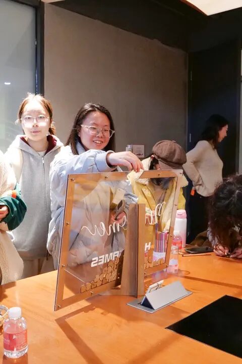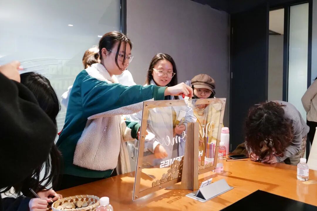 到达会议室,英雄游戏为每位同学准备了定制爱心木片,同学们签下自己的名字并投入签到框,以特别的仪式感开启当天的探索之旅~