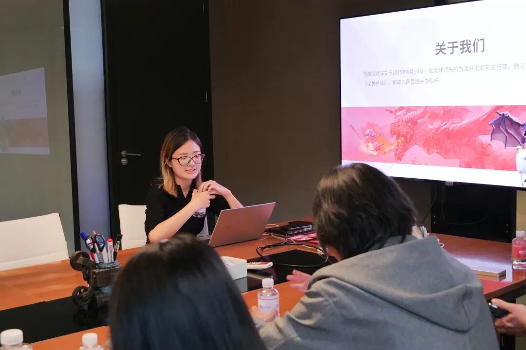 校招HR刘思佳为大家介绍了英雄游戏的基本情况。英雄游戏是一家既做自研也做发行的公司,在北京、杭州、广州等地都设有工作室,每个工作室都在打造深受玩家喜爱的游戏作品。通过她的分享,同学们对英雄游戏的业务布局和产品方向有了更生动的认识。