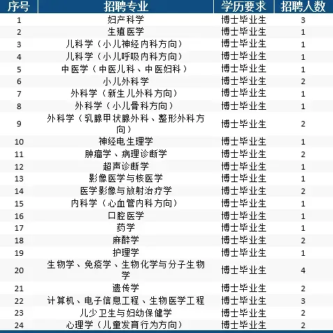 郑州大学第三附属医院河南省妇幼保健院2024年招才引智大会博士招聘岗位一览表