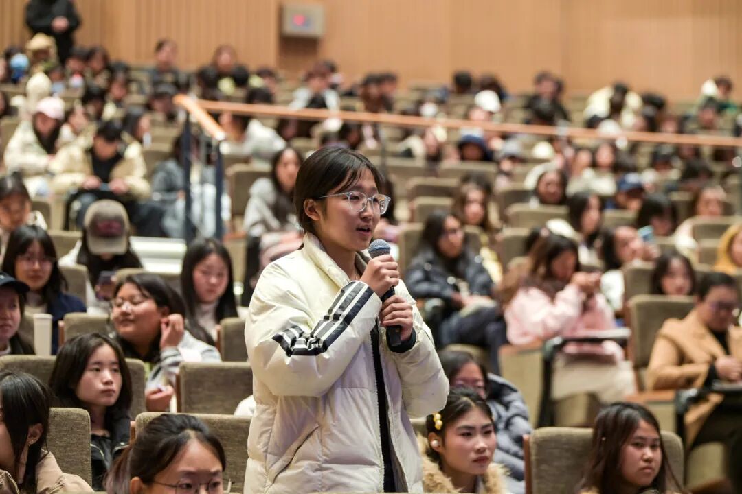 交流互动环节,教育学院科学教育、小学教育等专业的学生们踊跃提问,武向平院士逐一回应。武院士勉励学子:“怀‘九天揽月’之志,练‘格物致知’之功,在星辰大海中书写中国青年答卷!”现场掌声雷动,科学精神悄然传递。