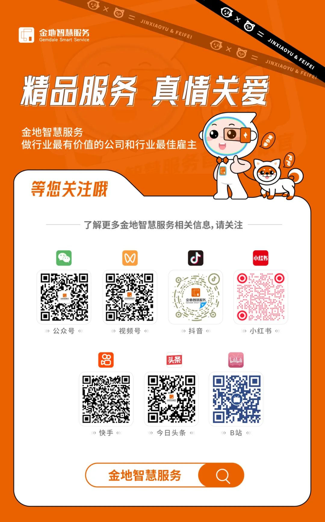 经过31年的经营发展,金地智慧服务截至目前已服务近500家政府机构、开发商、知名大型企业总部、物业企业,服务已覆盖近200个城市,将来也将继续立足服务之本,秉持“匠心”精神,回归服务本质,守正创新,打造美好生活,树立标杆示范。