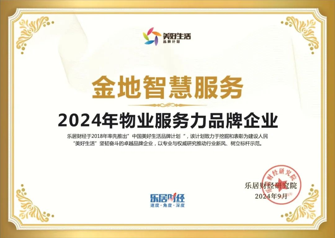 在现场,金地智慧服务荣获“2024年美好生活服务商”“2024年物业服务力品牌企业”奖项。