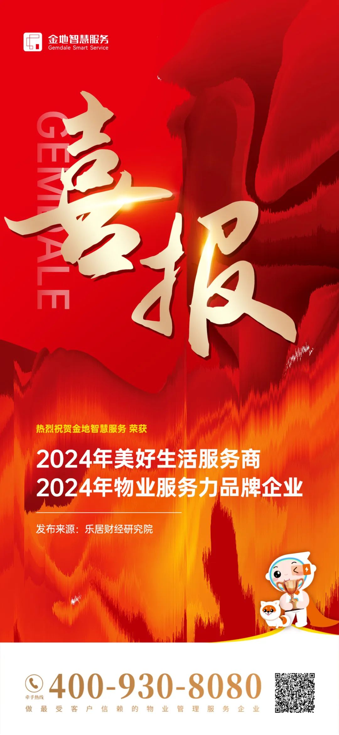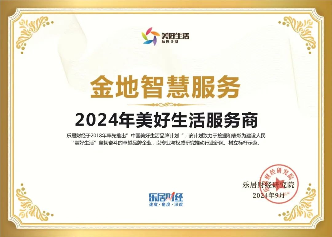 守正创新,此次荣获乐居财经此项重量级奖项,将成为金地智慧服务不断追求卓越的动力源泉。而承载荣耀的根基,正是精品服务,真情关爱的服务理念。