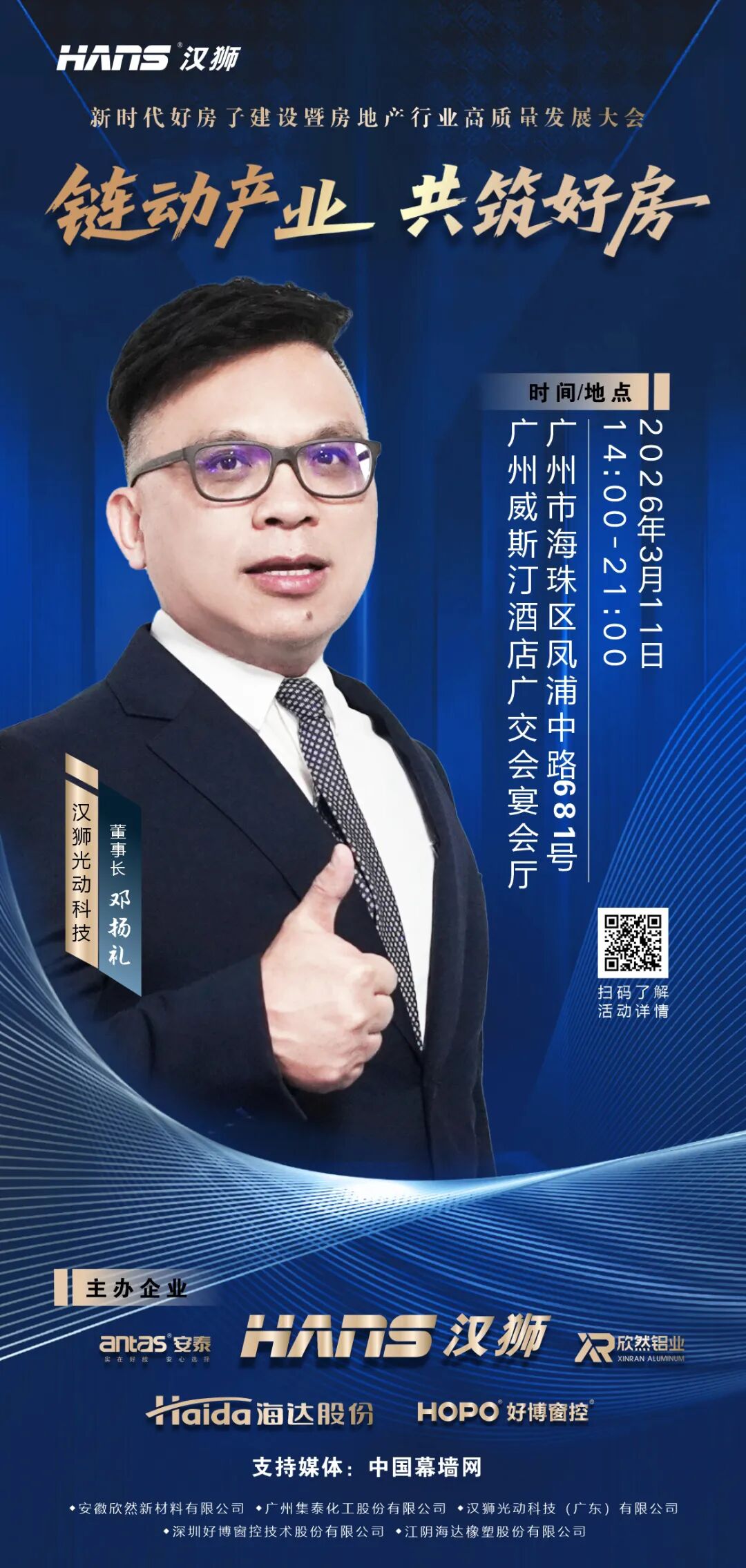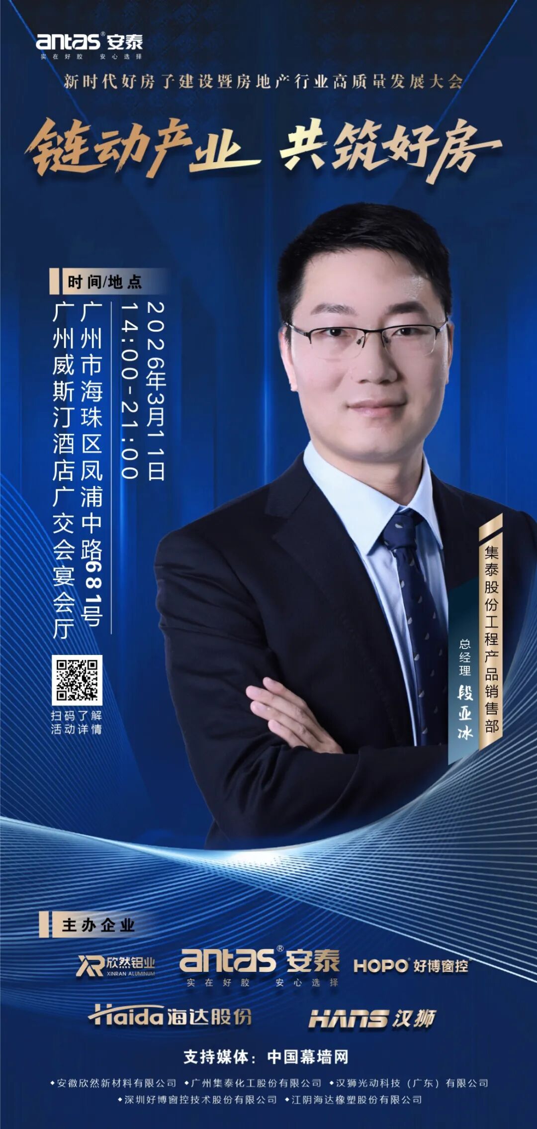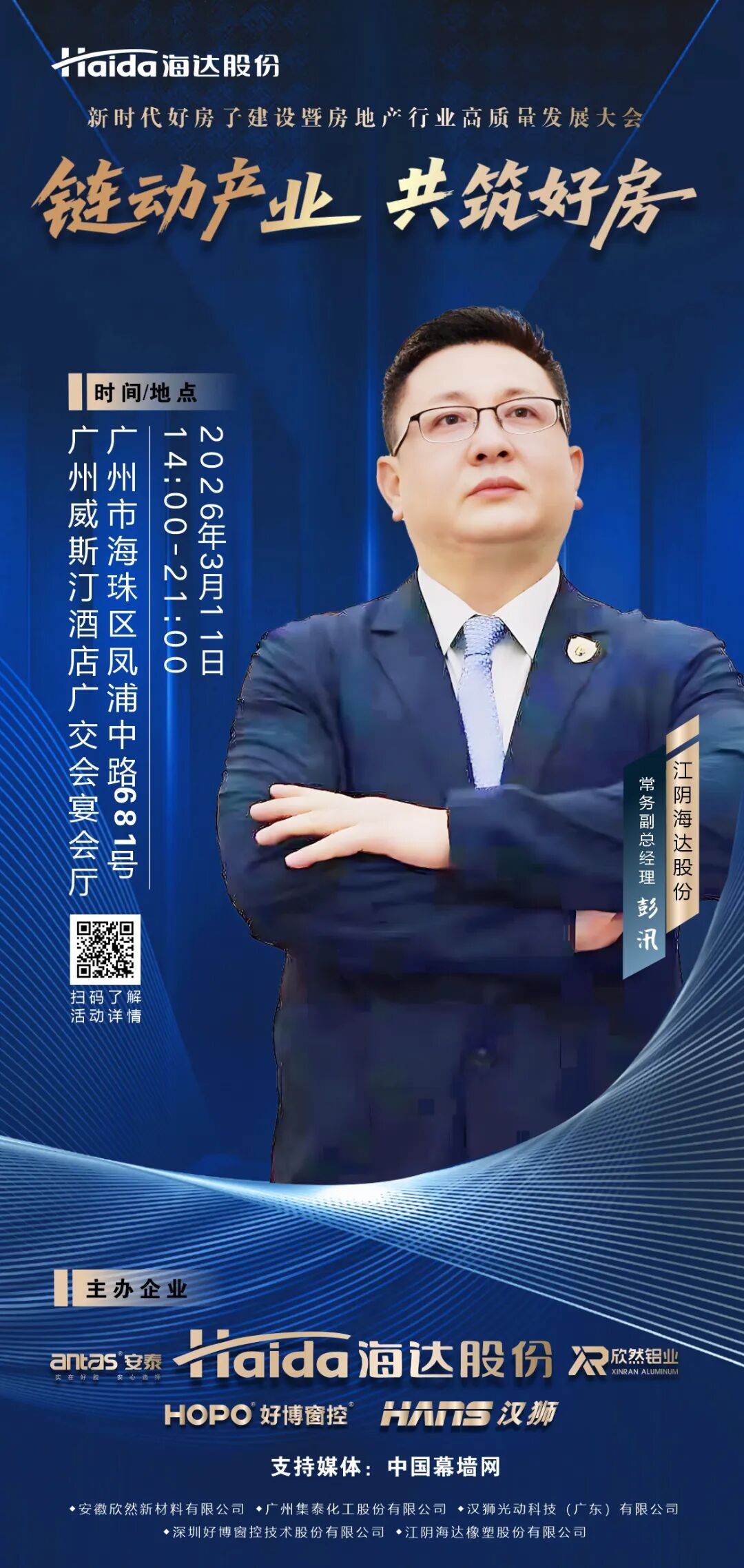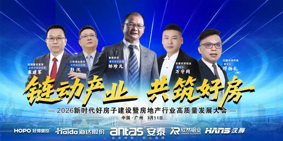 活动由安泰建筑胶、欣然铝业、好博窗控、汉狮光动、海达股份五大行业头部企业联合主办,旨在打破产业边界,构建房地产与门窗幕墙、建材领域的协同创新平台,共探高品质建造的实现路径。