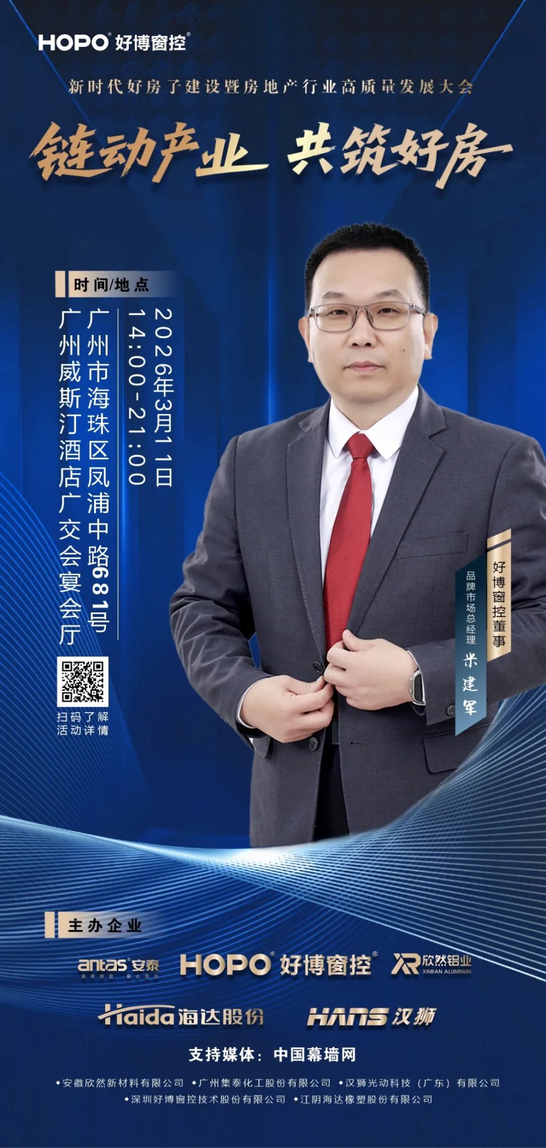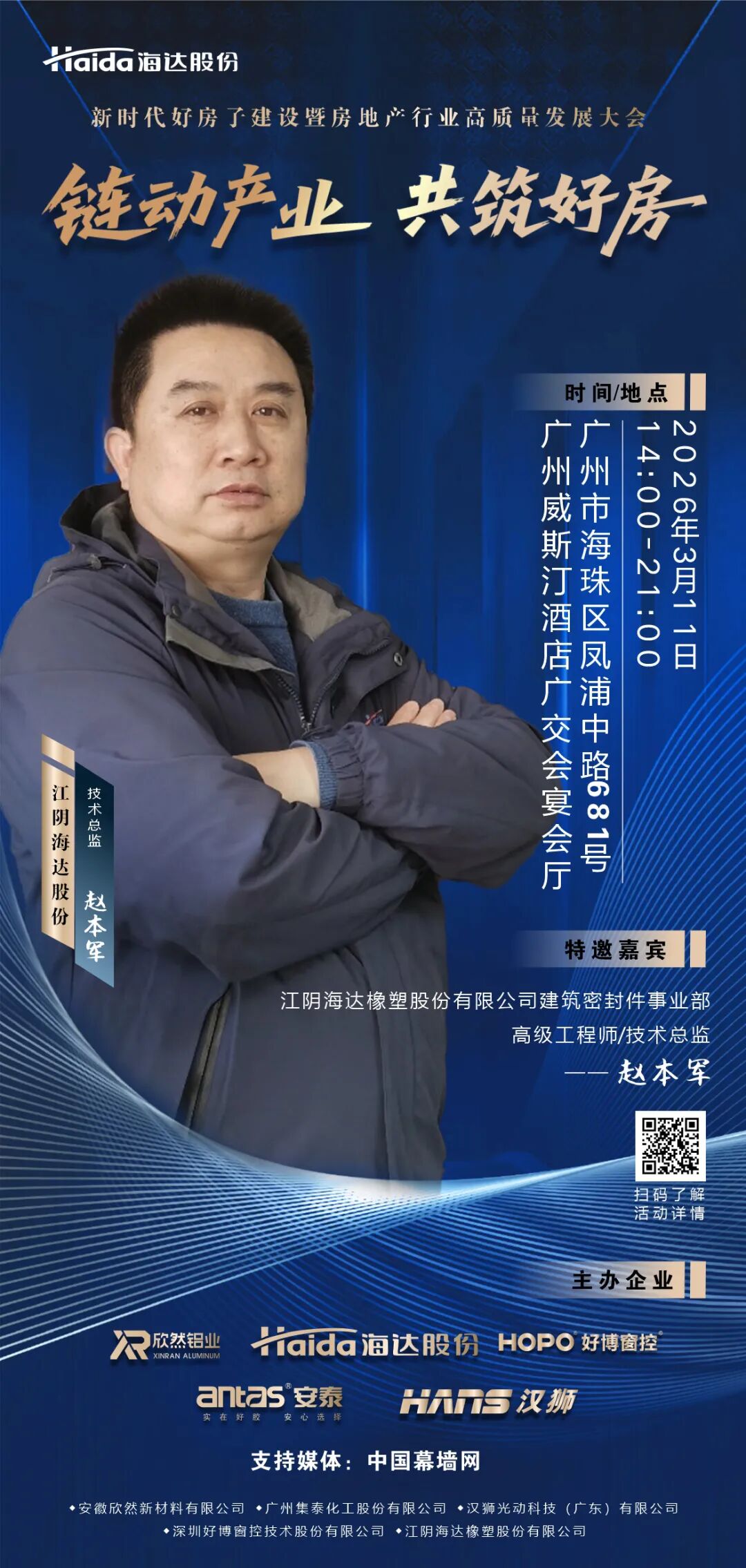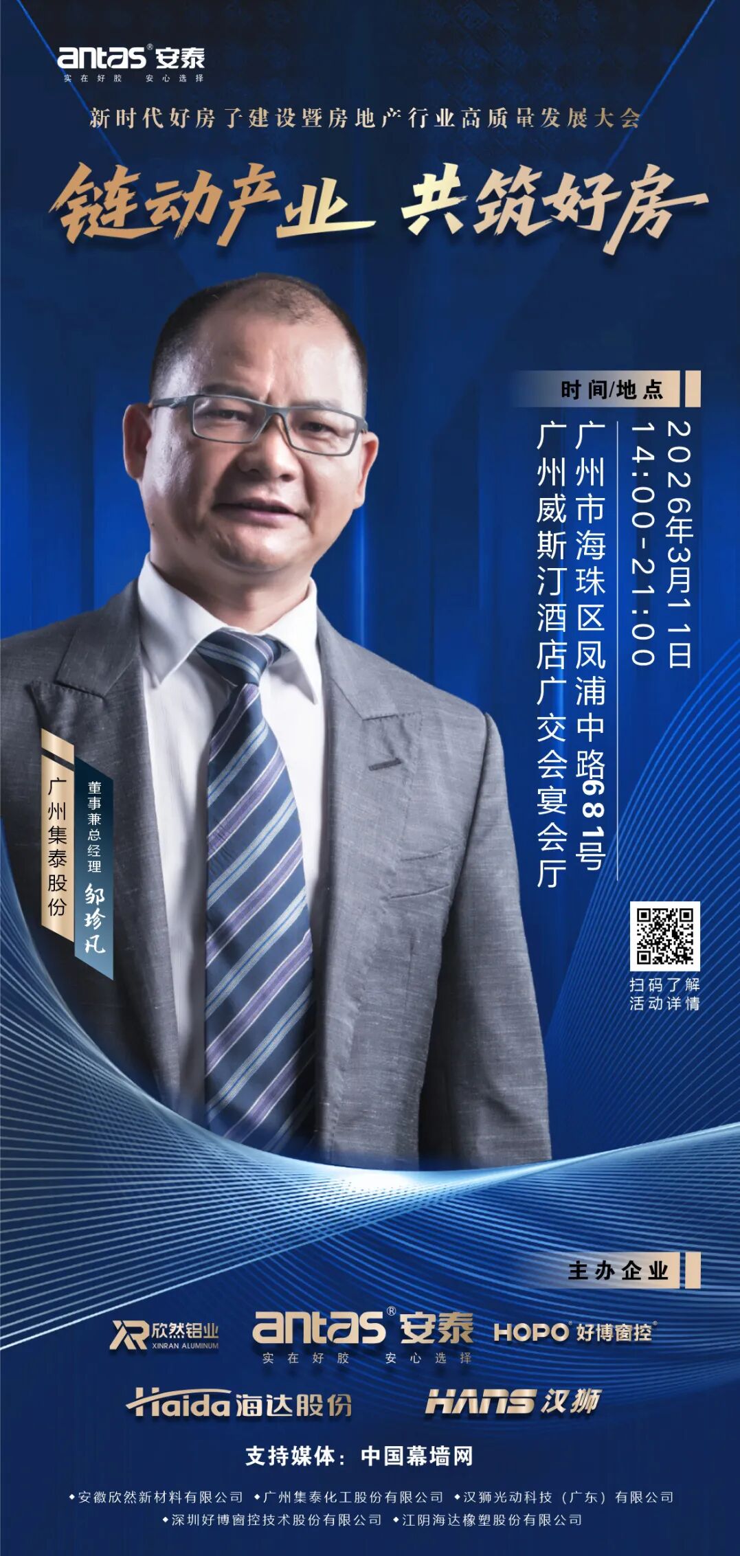 活动由安泰建筑胶、欣然铝业、好博窗控、汉狮光动、海达股份五大行业头部企业联合主办,旨在打破产业边界,构建房地产与门窗幕墙、建材领域的协同创新平台,共探高品质建造的实现路径。