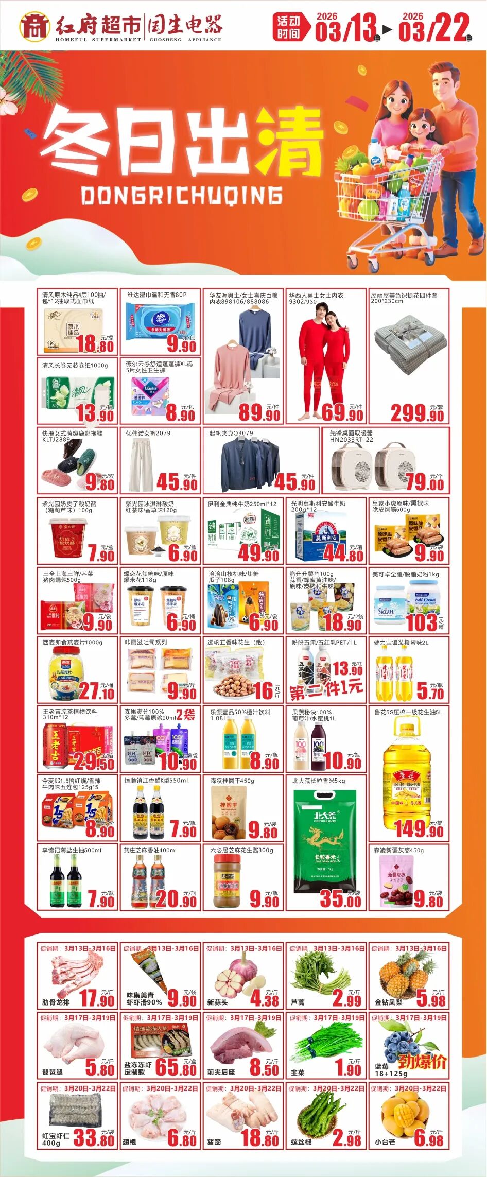 春日渐暖,冬装好物清仓大促来啦!红府超市携手国生电器,把满满实惠装进你的购物车,衣食住行一站式薅到底!