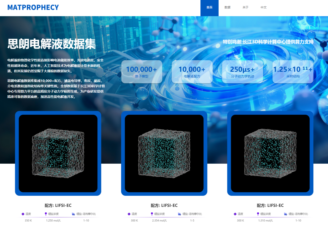 此次思朗电解液数据集与分子动力学模拟工具的发布,离不开思朗科技在专用算力领域的技术积累以及各方的鼎力支持。思朗科技拥有基于自主创新架构打造的国产专用算力软硬件加速平台的能力,为数据集建设与工具运行提供核心算力支撑。中国科学院自动化研究所作为“磐石”科学基础大模型的主导建设方,提供数据处理与模型训练能力,构建科学智能研究基础设施。长江3D科学计算中心承载大规模算力调度与资源服务,确保高效稳定的计算输出。上海科学智能研究院提供科学智能领域的前沿研究支撑。