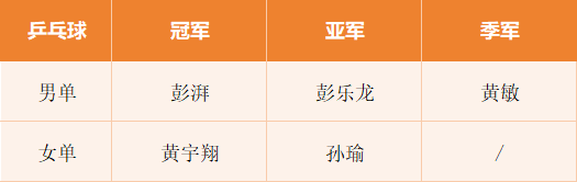 乒乓球比赛获奖人员