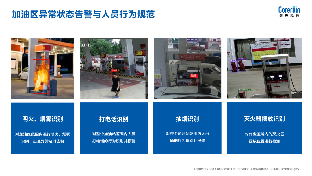 本次落地的核心在于算力与算法的深度融合。方案依托鲲云科技自研的可重构数据流架构 CAISA 系列 AI 芯片,在加油站边缘端部署高性能 AI 算力设备。相比传统架构,CAISA 架构凭借高实测算力利用率的特性,能够支持多路高清视频流的实时解析,确保了从风险识别到预警触达的秒级响应,为加油站的本质安全提供了坚实的自主可控底座。