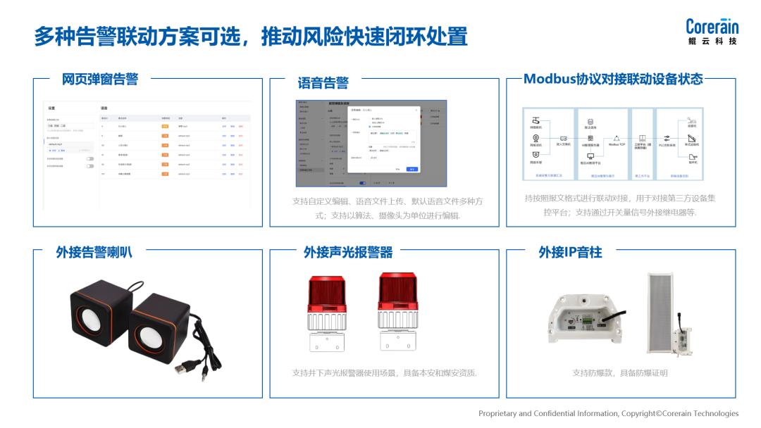 卸油环节是加油站事故高发区,规章制度往往难以被实时监督到位。鲲云科技通过算法逻辑联动,将卸油流程全面数字化:从静电夹状态识别、轮胎挡车器放置规范,到监护人员离岗监测,再到灭火器回收核验,所有操作均转化为可追溯的线上数据。一旦流程出现偏差,系统便通过现场音柱自动播报语音告警,实现由“事后追溯”向“事中干预”的实质性转变。