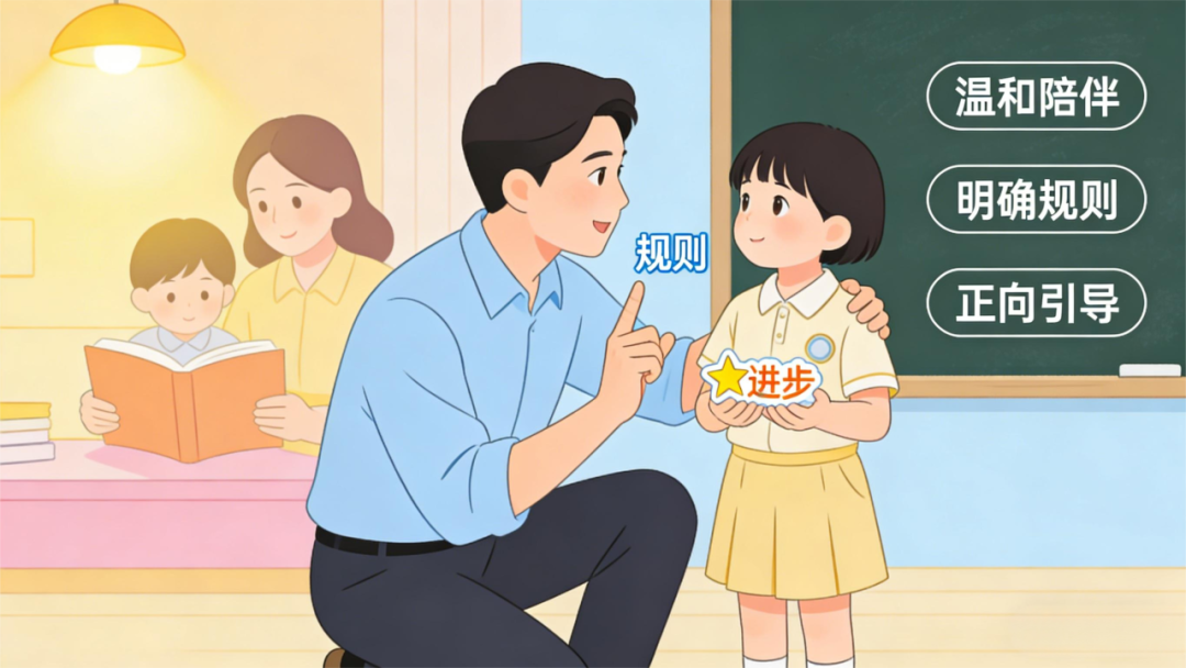 小学学龄期,孩子依赖性较强、规则意识正在建立,教育核心是温和陪伴+明确规则+正向引导,实操起来更侧重细节帮扶家长适当督促作业、纠正习惯,孩子都能较好接受。