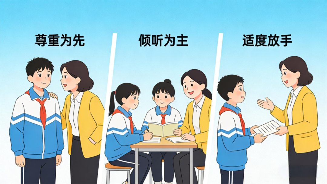 可进入初中青春期后,孩子渴望独立、反感被管控,再沿用小学的说教、紧盯模式,只会激化矛盾,想要平稳相处,必须切换成尊重为先+倾听为主+适度放手的沟通教育法。