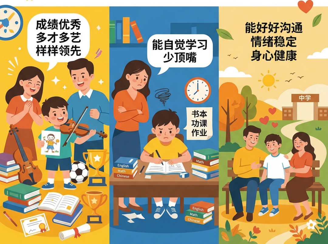 比如有的孩子小时候,家长希望他成绩优秀、多才多艺、样样领先;到了五六年级,只希望他能自觉学习、少顶嘴;