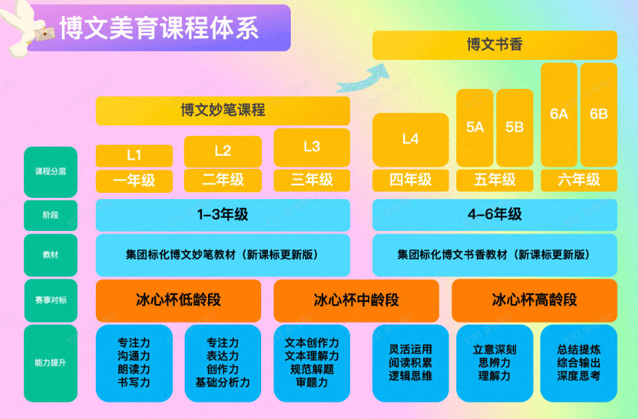 博文课程,结合有趣的动画互动和沉浸式情景体验,让孩子们在乐趣中增添学习兴趣,深刻感受语言的魅力。通过对阅读理解能力的不断训练,孩子们将学会如何列出思维导图,梳理架构、了解主旨、赏析总结,最终达到深度鉴赏的目的。