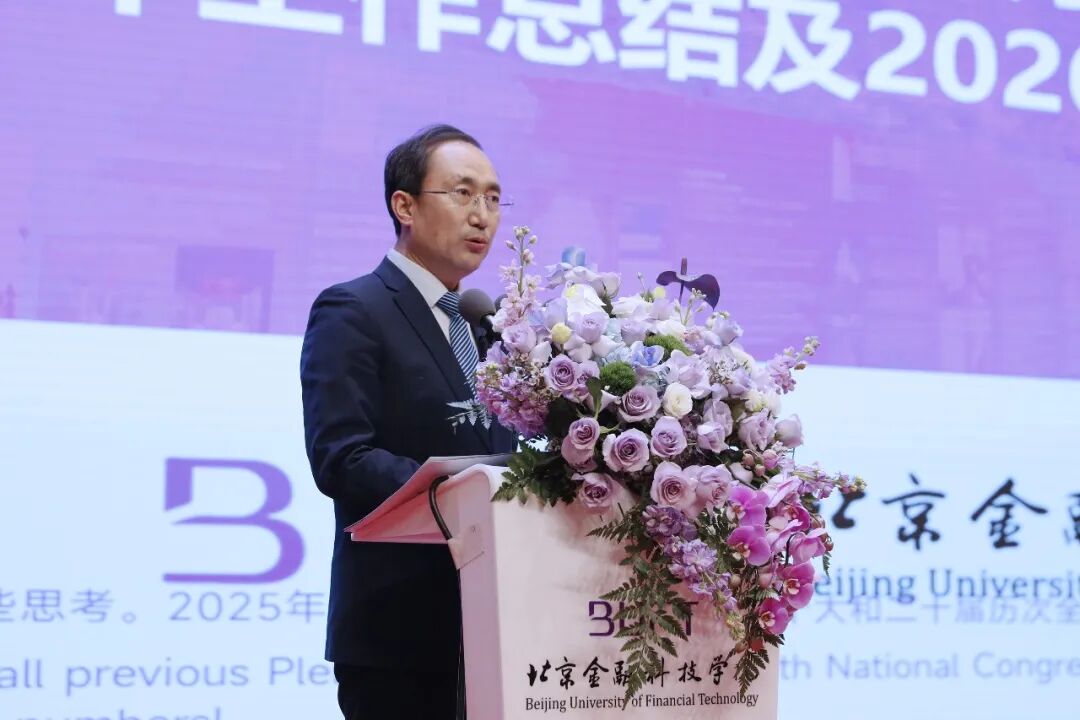 岁序更替,华章日新。1月18日,北京金融科技学院2025年工作总结表彰大会暨新春团拜会在学校体育馆举行。全体校领导与教职员工共同回顾总结了过去一年学校高质量发展取得的丰硕成果,表彰在各个岗位上作出突出贡献的先进集体与个人,并擘画新一年的发展蓝图。大会由副校长李娟主持。