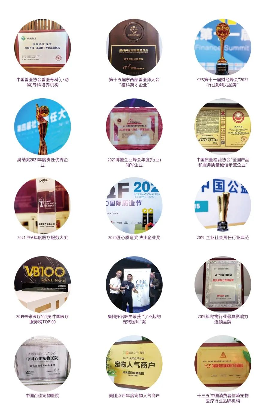 此外,宠爱国际还收获了不少行业内的认可。Blooming Brands年度·品牌TOP100、美团服务零售“2025年度影响力品牌”、美国动物医院协会(AAHA)认证 (宠爱国际动物医院(北京、上海)诊疗中心)、北京国际宠物用品展“匠心诊疗服务金奖”、抖音生活服务“2024年度优质好店奖”、2024中国兽医协会“兽医口腔(小动物)专科培养机构”、CFS第十三届财经峰会“2024杰出品牌形象奖”、2023中国兽医协会兽医骨科(小动物)专科培养机构等众多荣誉纷至沓来,见证着宠爱国际一步一个脚印的成长与蜕变。