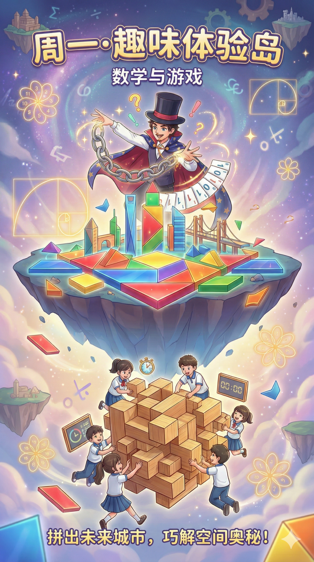 校园里的趣味鲁班锁、创意七巧板体验区更是人气爆棚,同学们凝神聚力、动手尝试,在拆解与拼接之间,感受传统益智玩具里的几何逻辑与空间思维,指尖的探索,让数学变得可触可感。