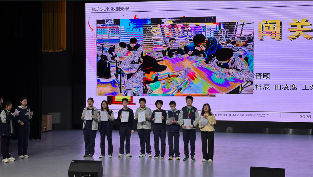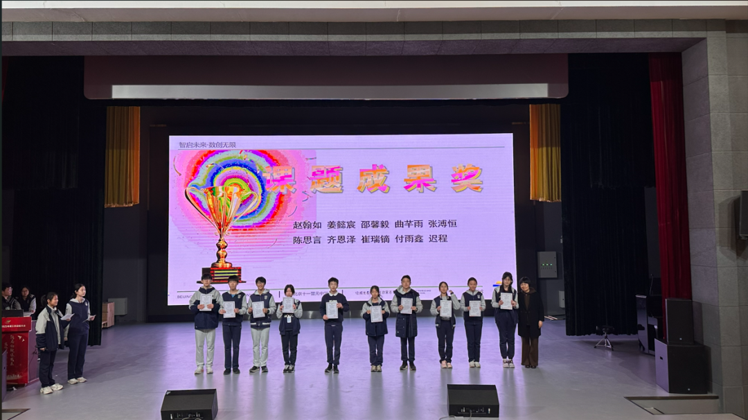 3月13日,本届数学文化节的闭幕式如约而至,这场收官之宴,以重磅课题成果展示为核心,将数学的实用价值与科创魅力展现得淋漓尽致,也为一周的精彩画上了圆满且亮眼的句号。闭幕式上,先进行了隆重的颁奖仪式,巧解鲁班锁、数学冒险王、课题成果奖、优秀志愿者等多个奖项依次颁发,这份认可,是对同学们一周来积极参与、勇于探索的最好嘉奖。