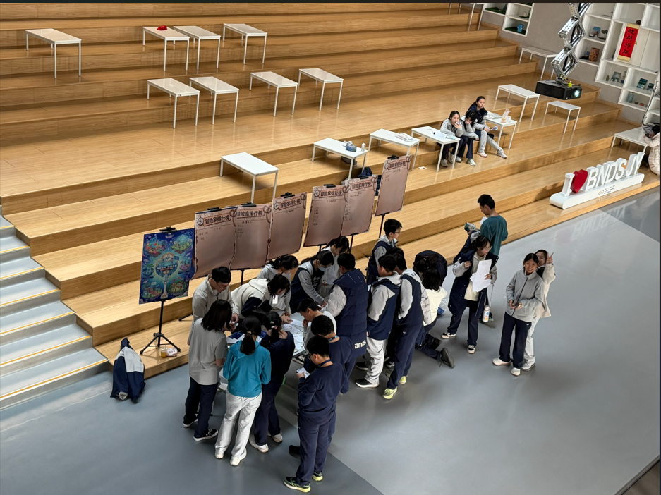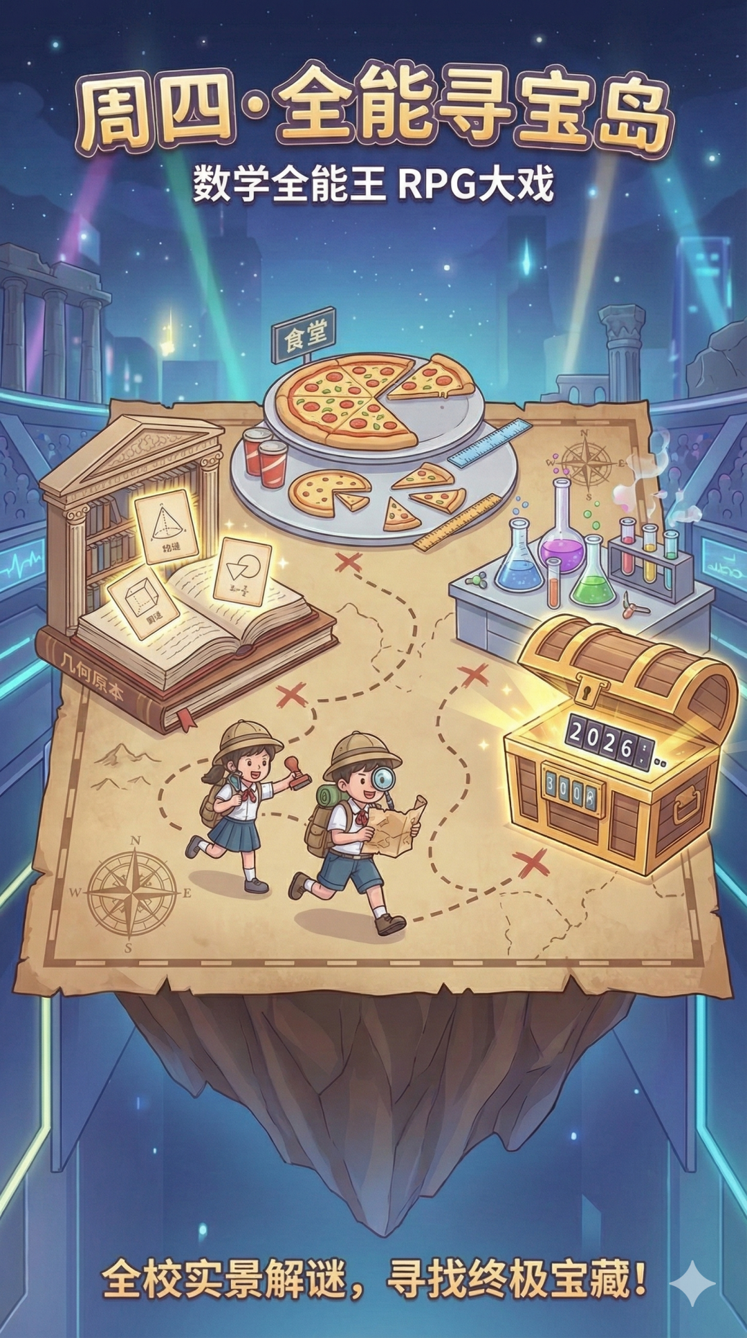 周四的实景解谜 RPG 寻宝活动更是将数学节氛围推向了高潮!全校范围化作大型冒险地图,同学们手持「数学全能王 RPG・冒险家执照」,化身见习冒险家,奔赴六大地点挑战对应年级的数学谜题。从教室到图书馆,从食堂到实验室,每一处都藏着待解锁的数学密码,大家或凝神思考、或组队讨论,在破解谜题的过程中收集「地点印章」,向着 “数学全能王” 的目标进发。
