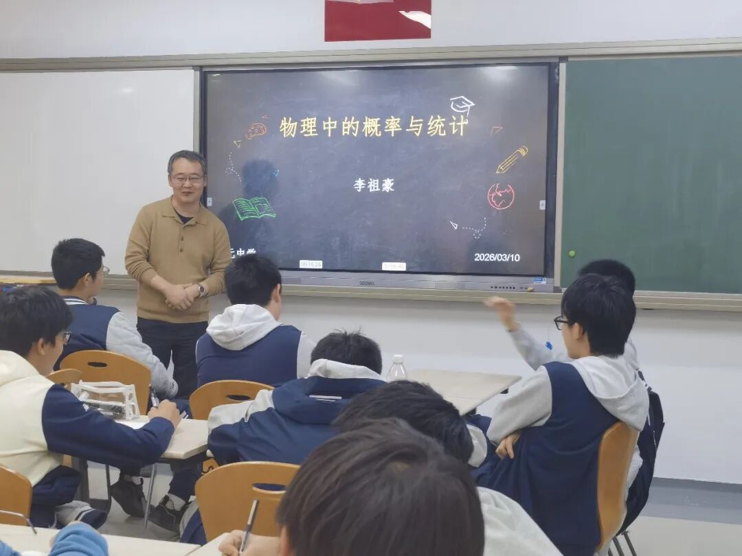 李梓嘉爸爸——中国科学院高能物理研究所李祖豪研究员带来《物理中的概率与统计》分享,用专业的视角、生动的讲解,将物理世界与数学知识紧密联结,让同学们领略到数理交融的科学之美。