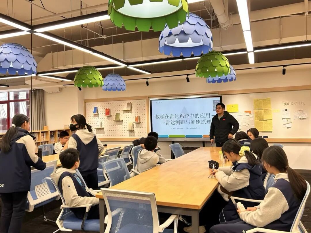 正午的校园,数学的热情已然升温。图书馆内,钟思瑜爸爸带来《数学在雷达系统中的应用》分享,将抽象的数学知识与实际的科技应用相结合,让同学们看见数学在前沿领域的硬核力量。
