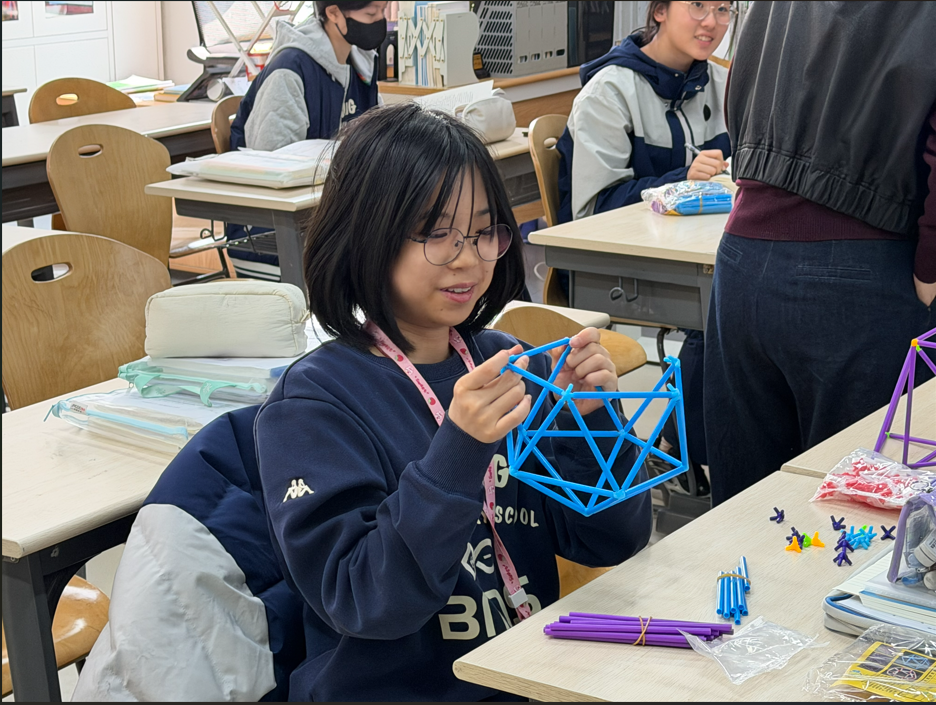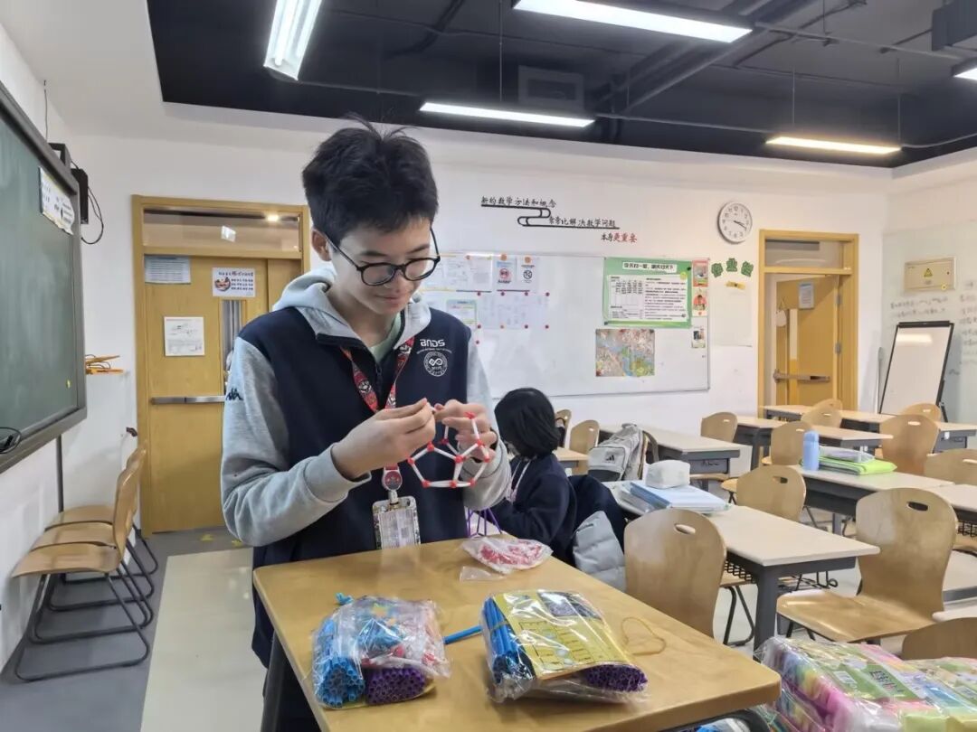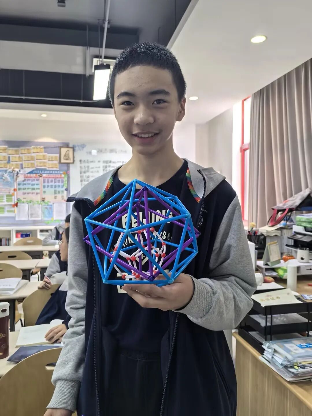 而柏拉图多面体体验区里,同学们围坐一起,观察、拼接、探索,在立体的几何世界里,感受图形拼接的奥秘,解锁空间想象的乐趣,每一个精致的多面体,都是同学们对数学美的亲手诠释。