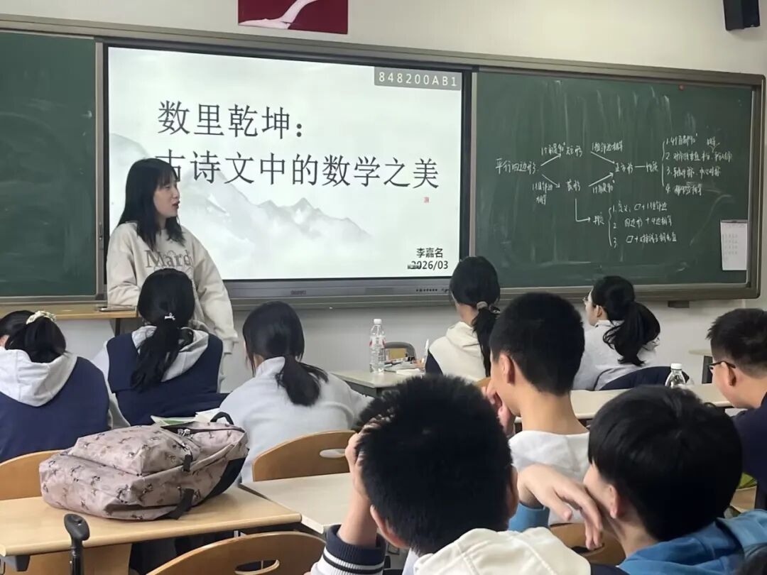 语文李嘉名老师的《数里乾坤:古诗文中的数学之美》,带大家在诗词文赋中寻找数学彩蛋,乘法口诀里的百鸟图、回文诗里的无限循环,让文字与公式共舞,语文的浪漫与数学的严谨撞出别样火花。