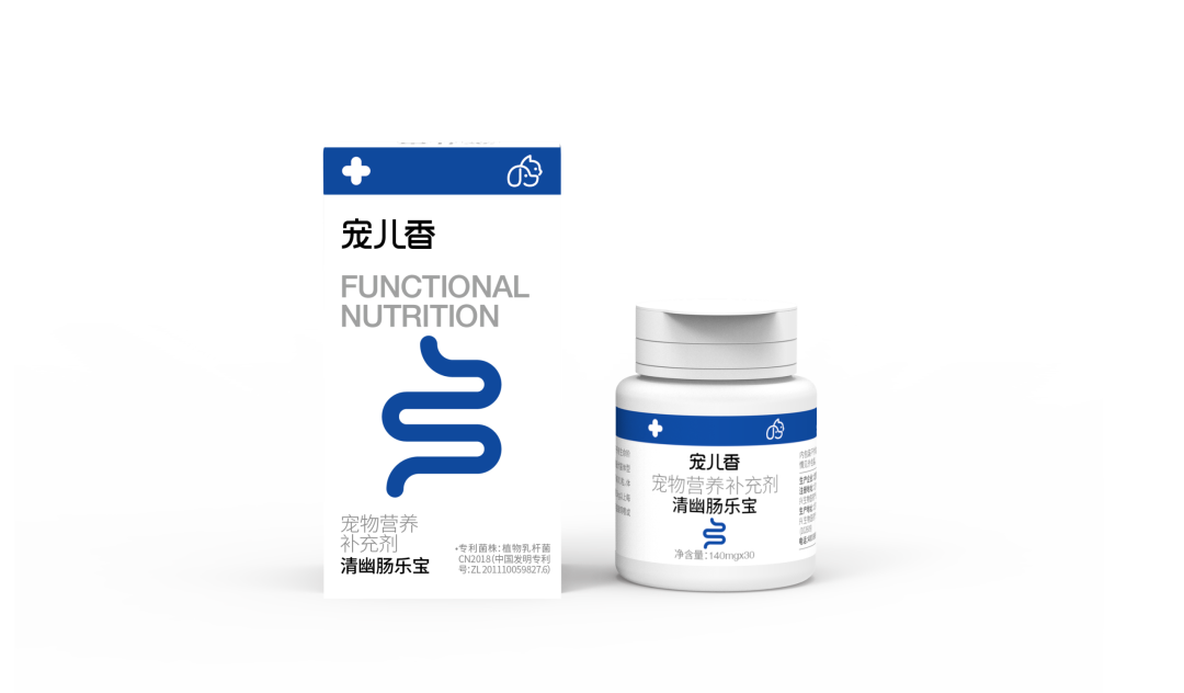 本品根据宠物幽门螺杆菌感染及肠道菌群失衡的生理特性,针对抑制幽门螺杆菌、修护胃肠黏膜、平衡肠道微生态而研究开发的产品。选用专利菌株植物乳杆菌 CN2018(中国发明专利号:ZL 201110059827.6),可针对性抑制幽门螺杆菌生长;搭配嗜酸乳杆菌、粪肠球菌、长双歧杆菌 3 大定植活菌,帮助在肠道内形成稳定的优势菌群,平衡肠内菌群结构;同时添加谷氨酰胺,有助修护受损胃肠黏膜,改善肠黏膜屏障功能;辅以盐酸硫胺、胃蛋白酶等双效消化组合,助力提升宠物消化能力,有助于维持宠物胃肠健康状态。