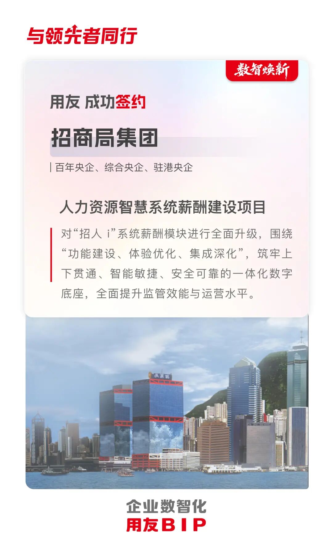 近日,用友与招商局集团再度携手,签约人力资源智慧系统薪酬建设项目。此次项目,将通过用友BIP,推动招商局集团人力资源智慧系统的创新升级,为中央企业薪酬监管树立新标杆。