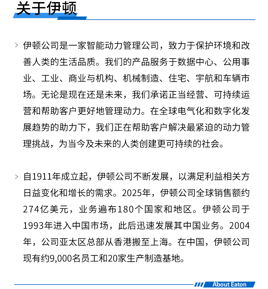 美国克利夫兰 —— 智能动力管理公司伊顿(纽交所代码:ETN)于近日宣布第15次荣登由道德村协会 (Ethisphere) 发布的“全球最具商业道德企业榜”,该机构是定义和推动合乎道德的业务实践标准的全球领导者。