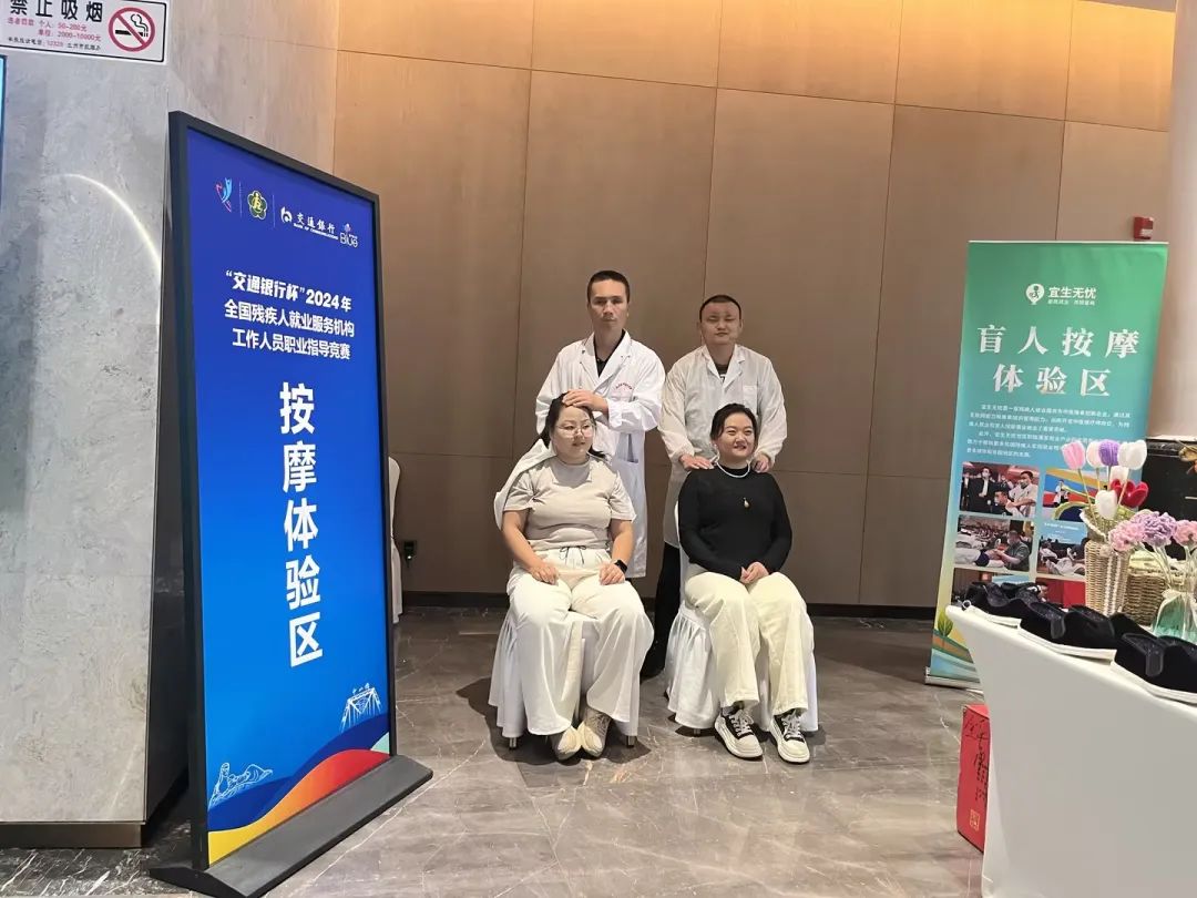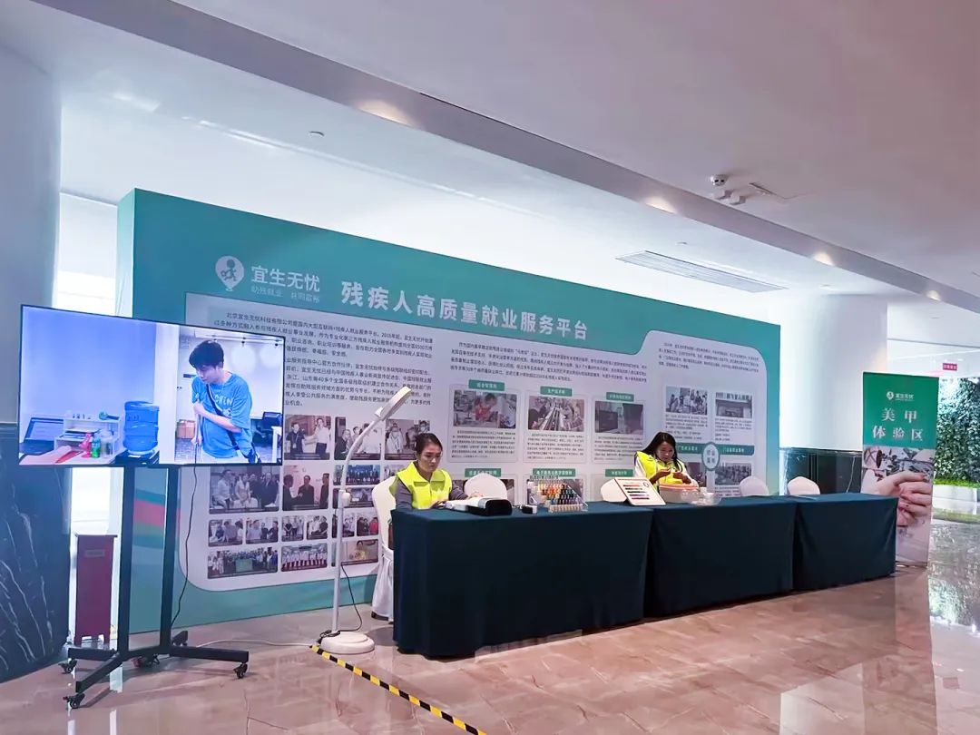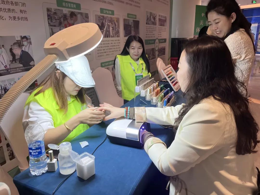 为全面展示残疾人就业风采,同时给来自全国各地的选手提供更加舒适的参赛体验,宜生无忧于现场特别设置“盲人按摩体验区”和“美甲体验区”,组织残疾人中医理疗师和美甲师提供免费服务,吸引了往来人群的驻足与关注。