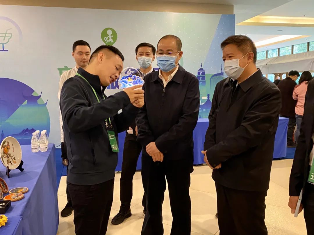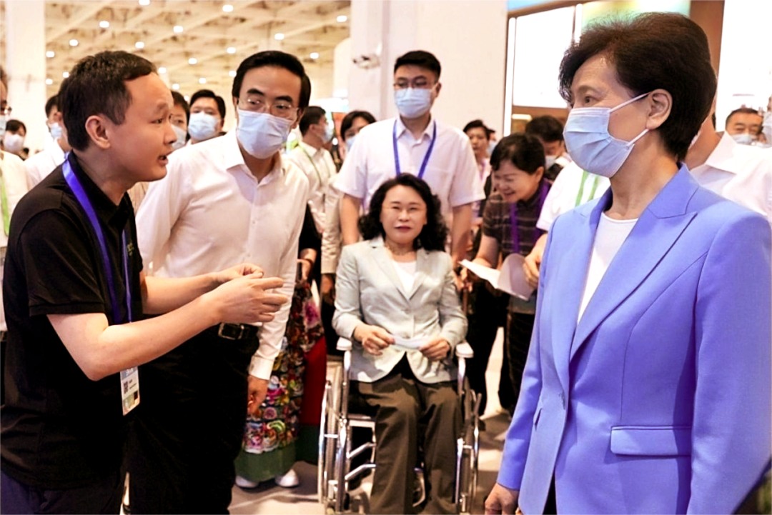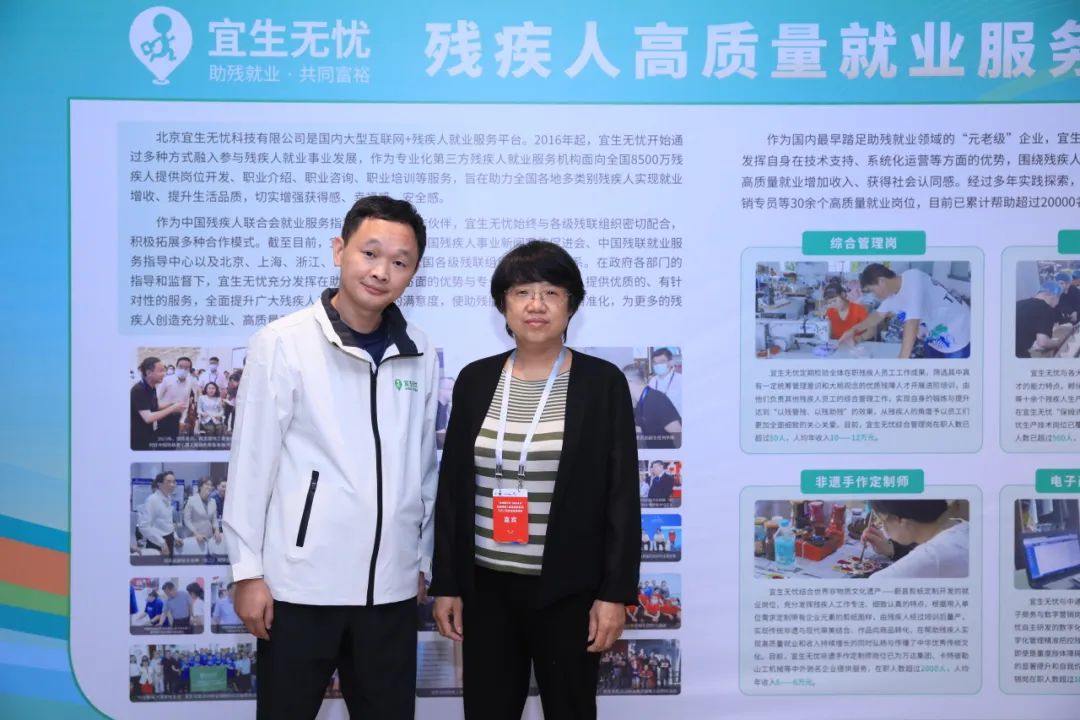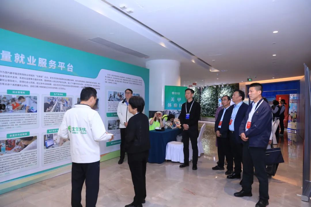 中国残联第八届主席团副主席李东梅莅临宜生无忧展区参观交流,中国残联教就部、就业服务指导中心,甘肃省残联,黑龙江省残联有关领导陪同参观。