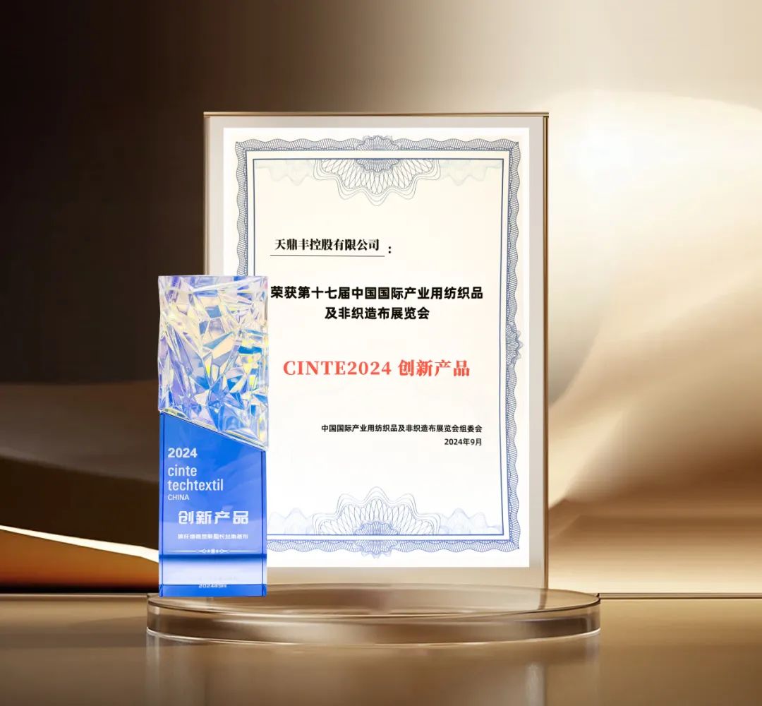 9月19日,在上海新国际博览中心召开的第十七届中国国际产业用纺织品及非织造布展览会正式启幕,组委会主办的“创新展品评选活动”颁奖仪式在开展首日顺利举行。天鼎丰玻纤增强型聚酯长丝胎基布从众多优秀产品中脱颖而出,荣获CINTE2024技术创新奖。