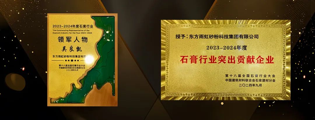 9月23日至25日,由中国建筑材料联合会石膏建材分会、宜昌市人民政府及建筑材料工业技术情报研究所联合主办的“第十八届全国石膏技术交流大会暨展览会”在湖北省宜昌市顺利举行,凝聚行业力量,共同探索石膏砂浆领域高质量发展之路。东方雨虹砂粉科技集团凭借在石膏领域的深刻洞察、持续的技术革新与卓越的市场贡献,荣获“2023-2024年度石膏行业创新发展突出贡献企业”称号。东方雨虹砂粉科技集团总裁吴良凯先生获“2023-2024年度石膏行业领军人物”荣誉称号。