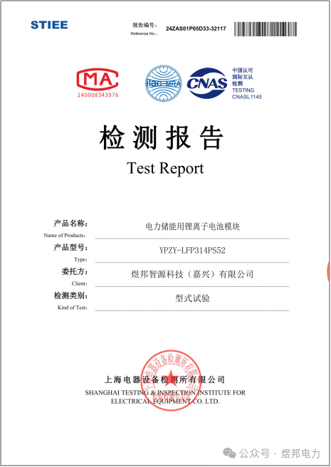 近日,煜邦智源自主研发的电力储能专用液冷电池包产品,通过了所有必要实验项目,成功获得了基于新国标“GB/T 36276-2023电力储能用锂离子电池”(以下简称“新国标”)的型式试验中期实验报告。