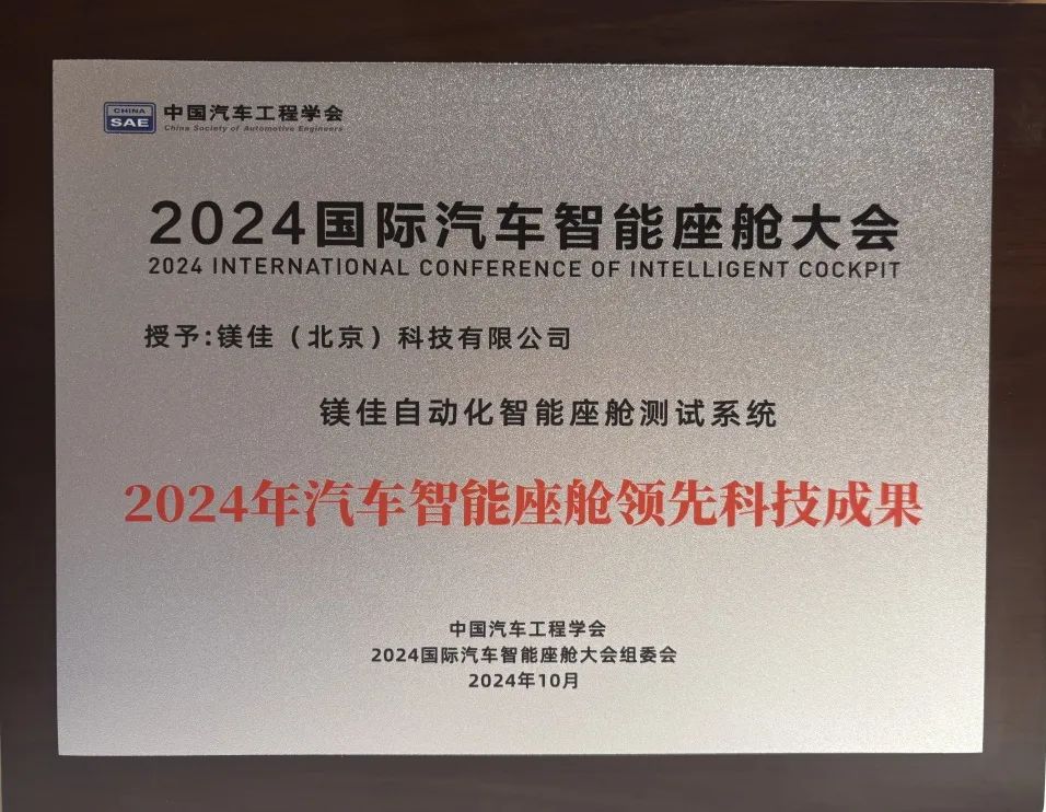 会上发布的2024汽车智能座舱领先科技成果,对于推动汽车智能座舱产业的创新发展、提升行业技术水平、促进国际交流合作等方面都具有重要的意义。镁佳自动化智能座舱测试体系凭借在创新性、实用性和经济性等方面的杰出综合表现获评“2024汽车智能座舱领先科技成果”。