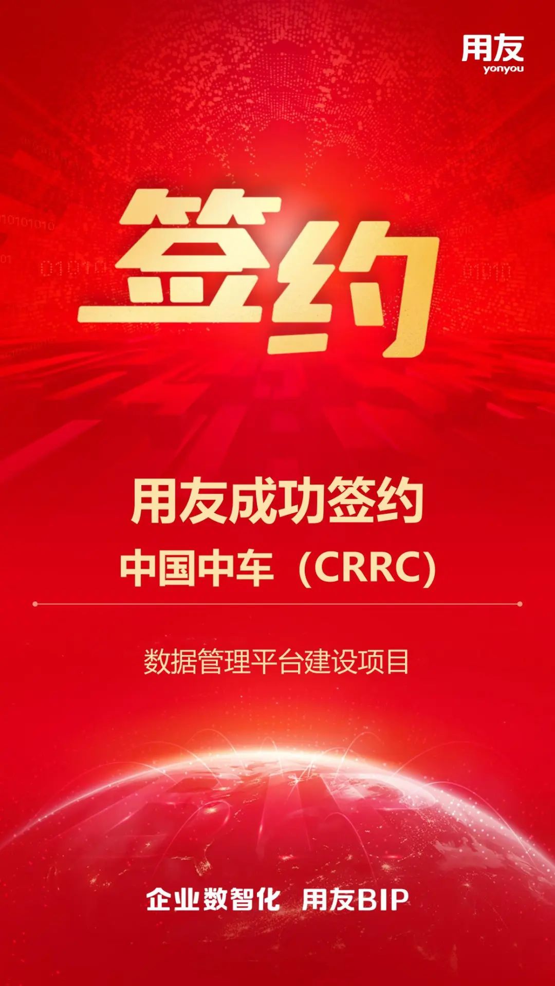 用友BIP已经成为超过70%中央企业的数智化首选!用友将与中国中车数智化发展战略同行,持续保持良好合作,依托用友BIP,打造符合中国中车新时代发展要求,具备中车特色的数据治理体系,共创中央企业数智化转型标杆。