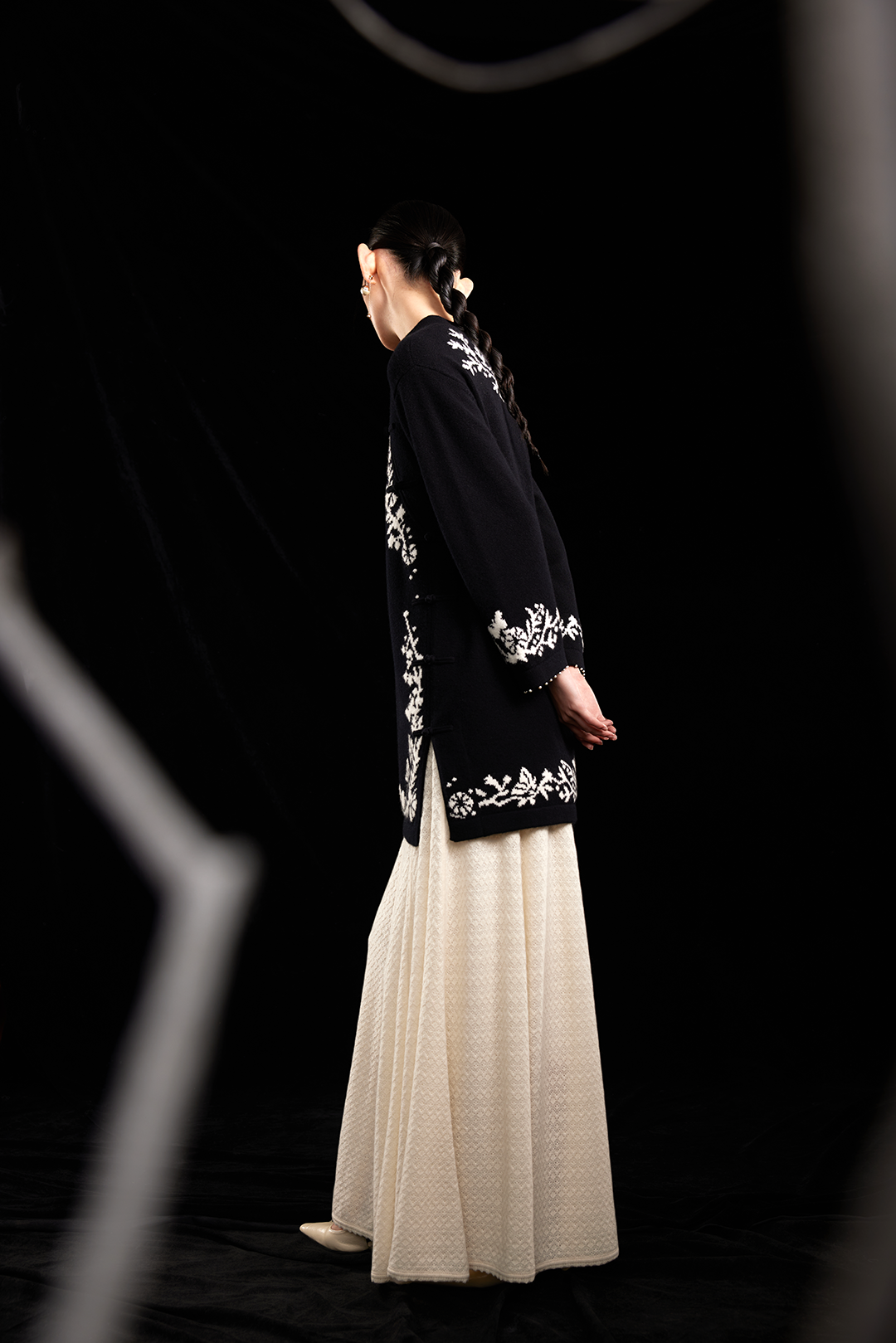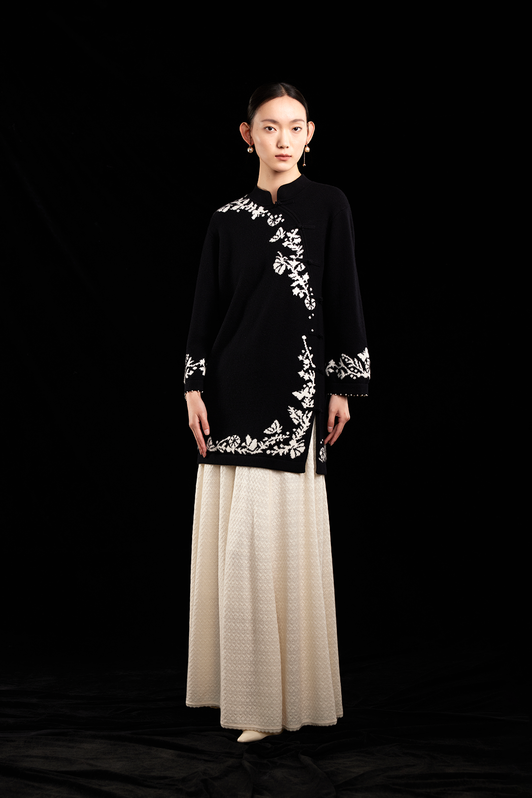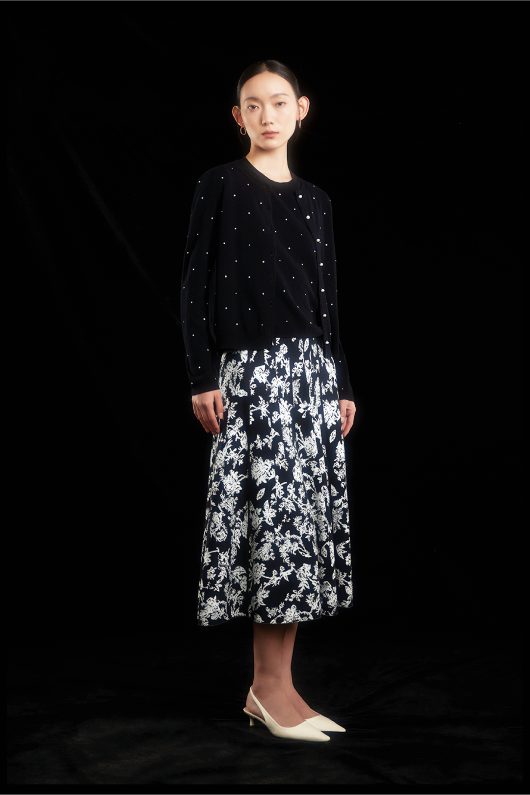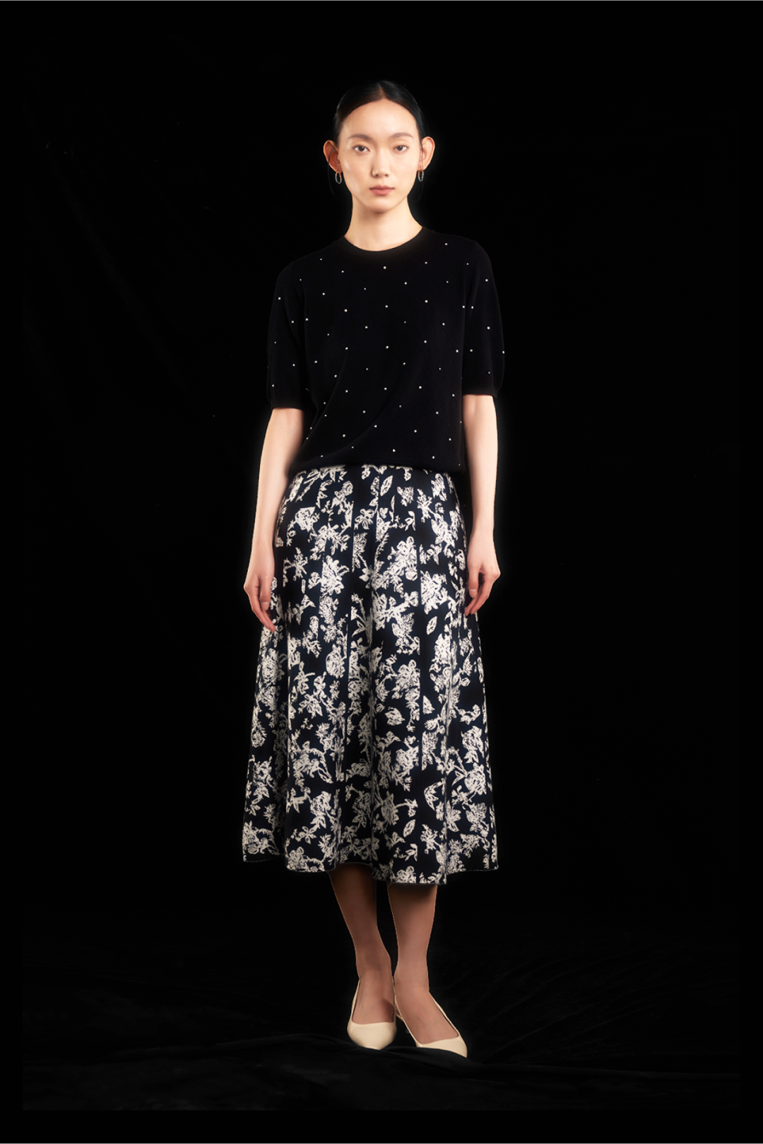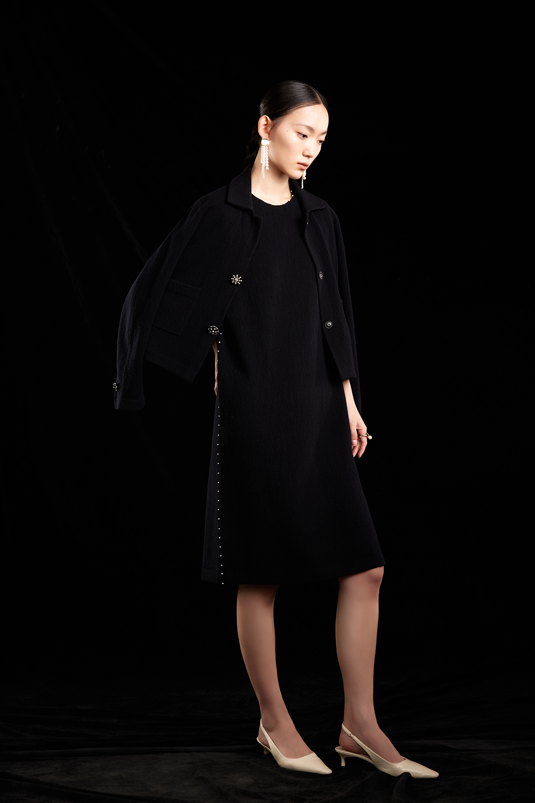 精纺羊绒珍珠扣V领女衫 / 黑 / H91060 高支纱珠饰女半裙 / 黑 / H91065-1