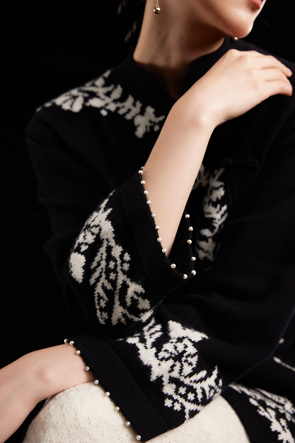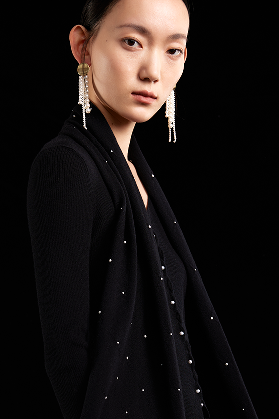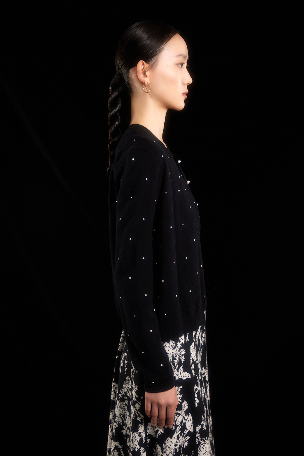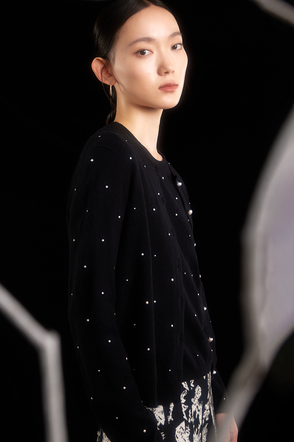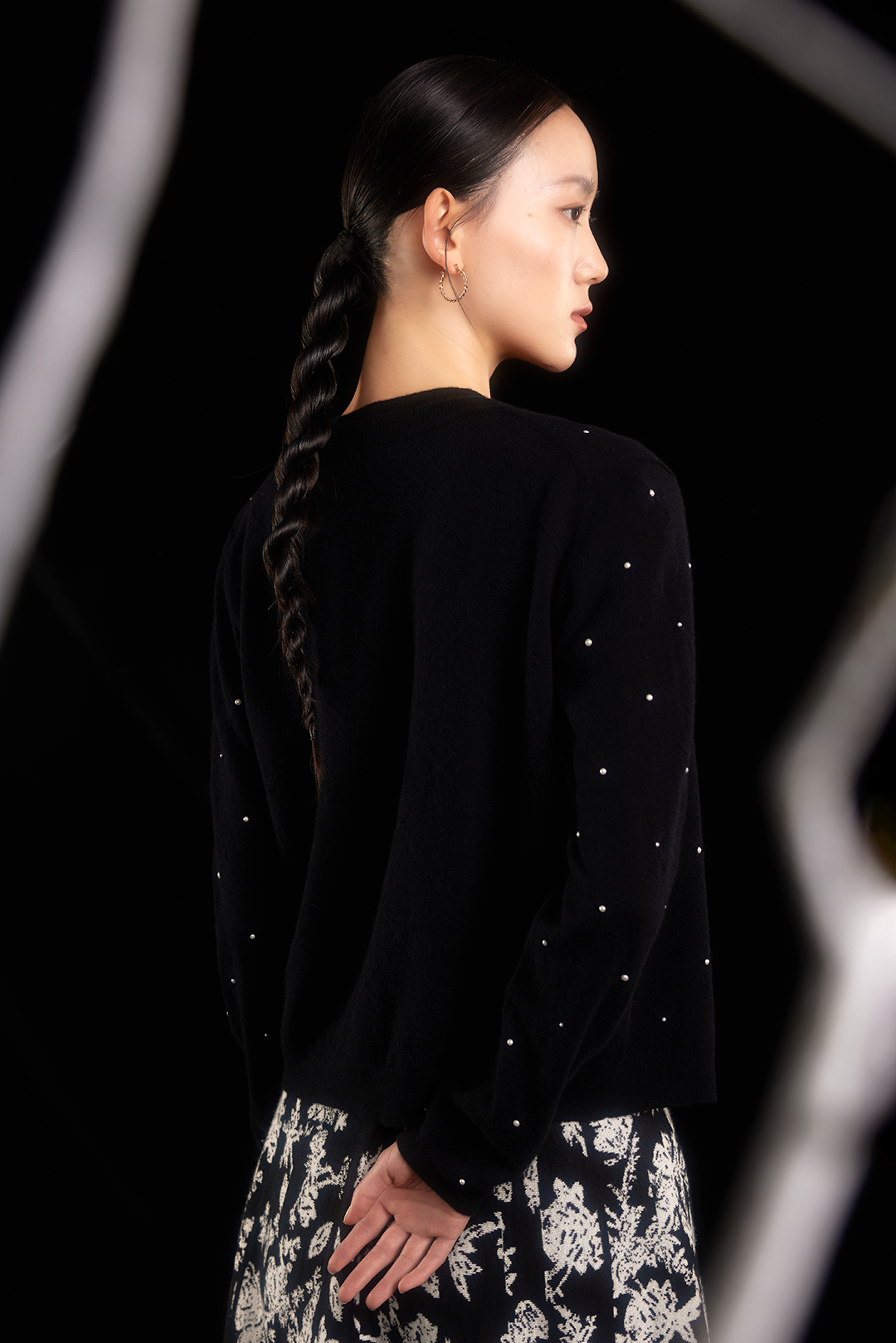 高支纱羊绒珍珠七分袖女衫 / 黑 / H91040高支纱羊绒珠饰女开衫 / 黑 / H91041
