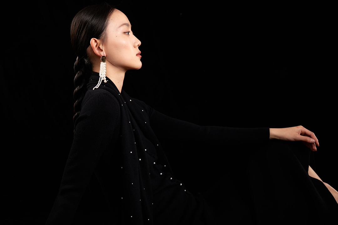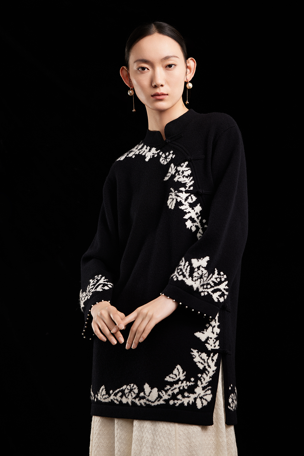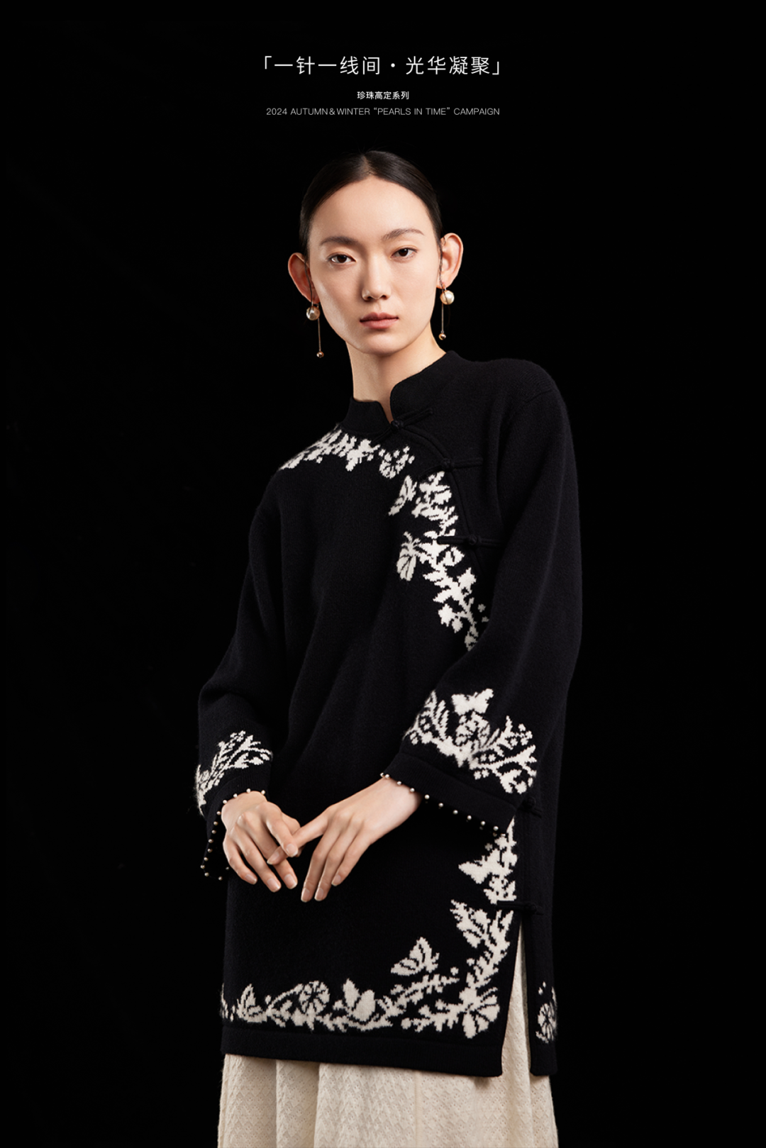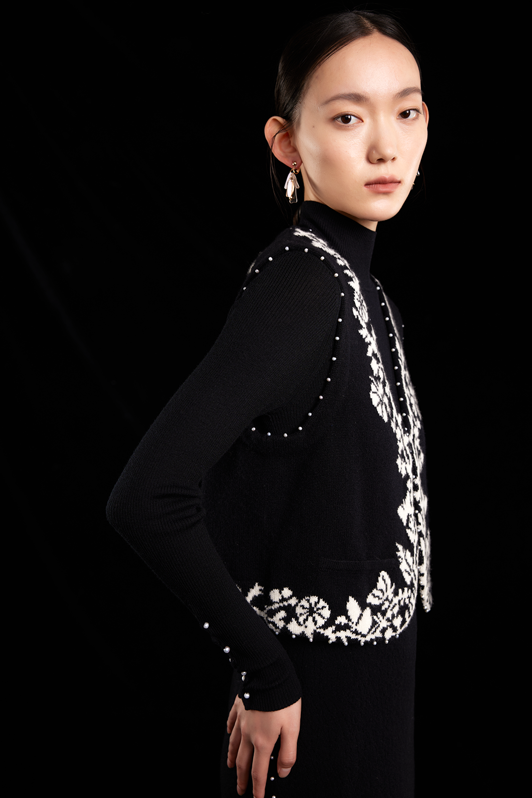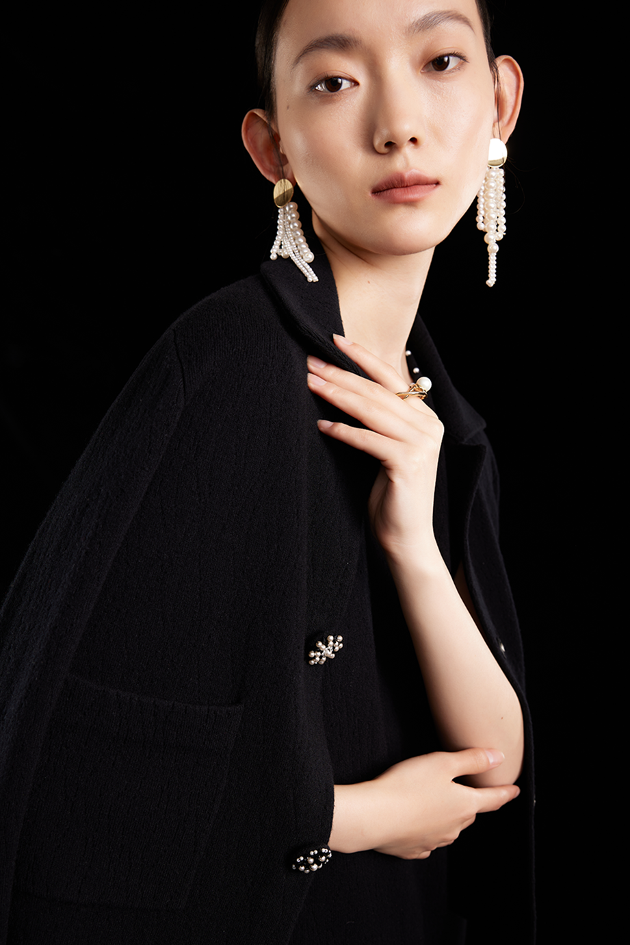 高支纱羊绒珍珠七分袖女衫 / 黑 / H91040高支纱羊绒珠饰女开衫 / 黑 / H91041